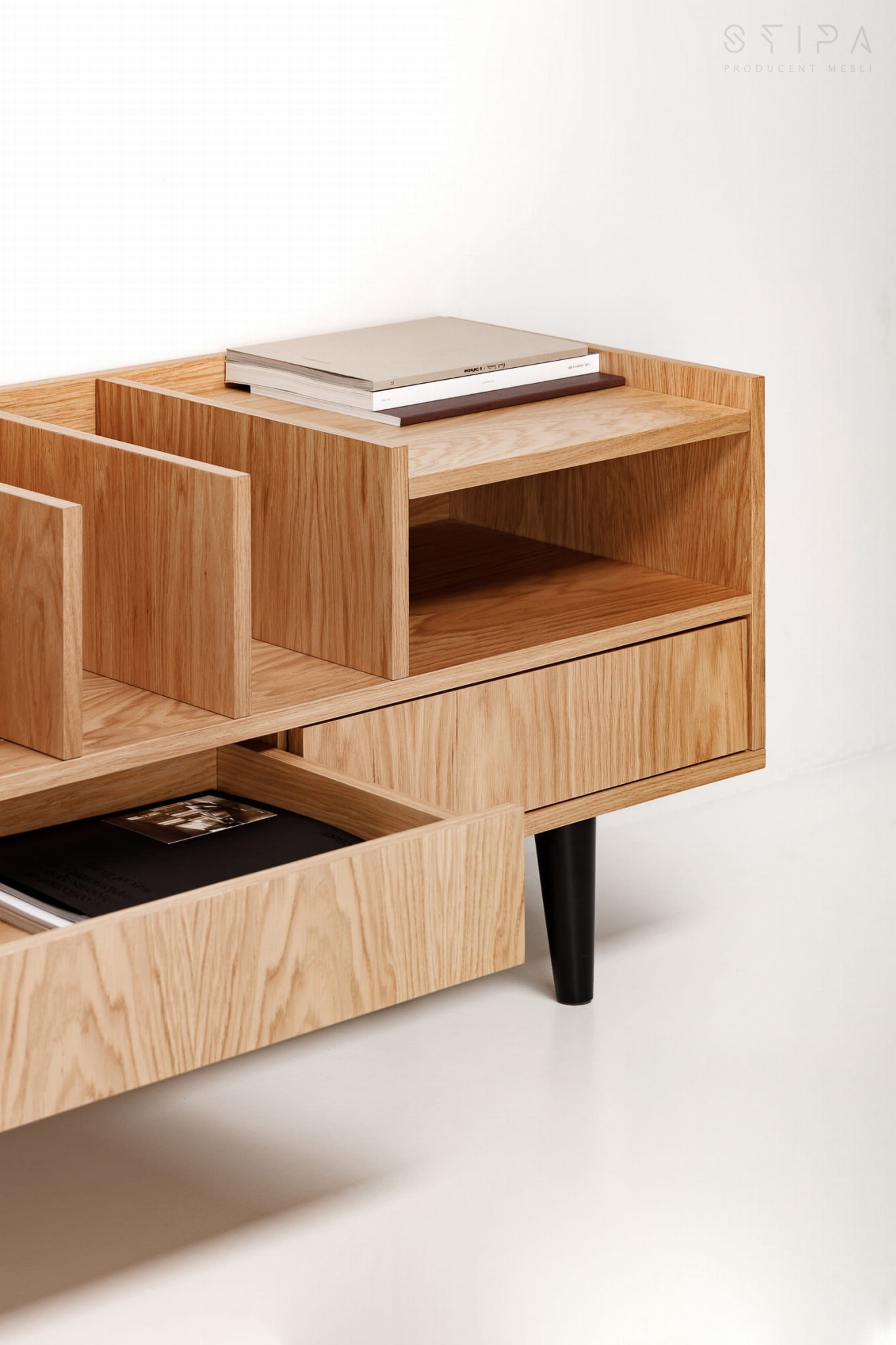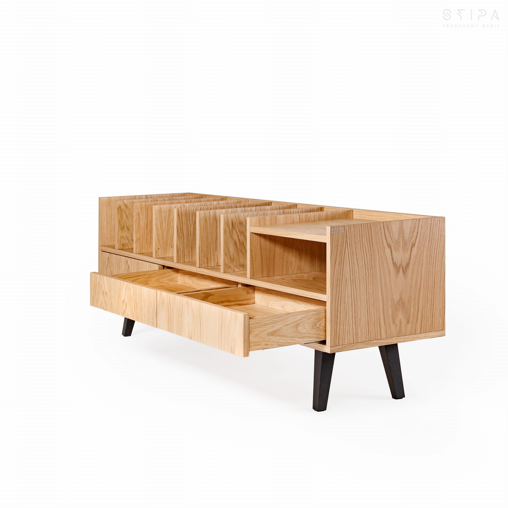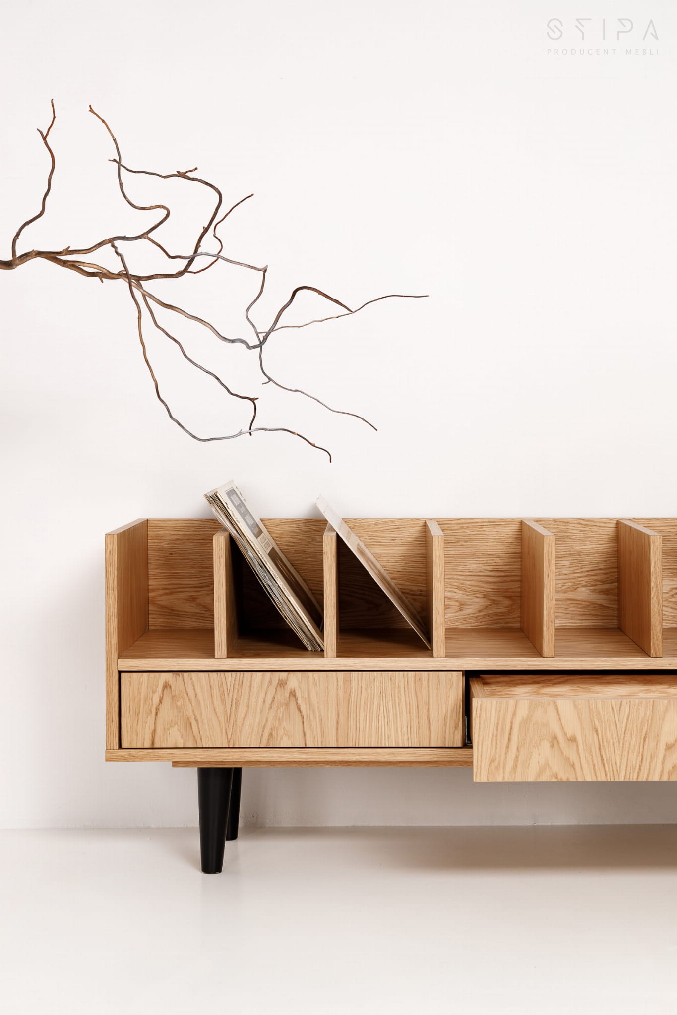 Sie suchen nach einer praktischen und stilvollen Lösung, um Ihre Vinylsammlung aufzubewahren? Wir präsentieren Ihnen unser Produkt - den Schallplattenschrank POPPY des polnischen Möbelherstellers STIPA, erhältlich im Online-Shop. Dieser elegante Schrank aus Eichenfurnier ist die ideale Lösung für Musikliebhaber und Ästheten im skandinavischen, Loft-, Industrie- und minimalistischen Stil.