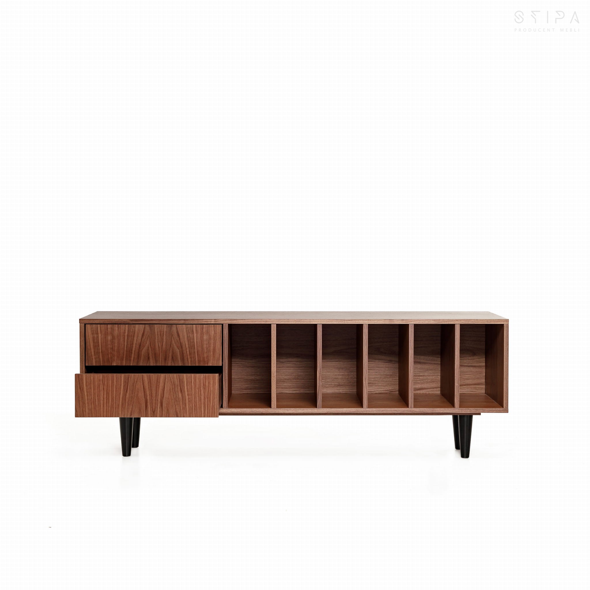 Sind Sie auf der Suche nach einer perfekten Lösung zur Aufbewahrung Ihrer Vinylsammlung? Wir präsentieren MARIGOLD - einen außergewöhnlichen Schallplattenschrank des polnischen Möbelherstellers STIPA. Dieses wunderschöne Möbelstück aus Eichenfurnier in amerikanischem Walnussfurnier wird die Erwartungen von Liebhabern klassischer und moderner Arrangements erfüllen. Dank seines vielseitigen Designs im skandinavischen, Loft-, Industrie- und minimalistischen Stil fügt sich der MARIGOLD-Schrank perfekt in jedes Interieur ein - sei es im Wohnzimmer, Büro, Arbeitszimmer oder Schlafzimmer. Lernen Sie diesen außergewöhnlichen Schrank näher kennen und überzeugen Sie sich, warum er bei Vinyl-Liebhabern so beliebt ist.