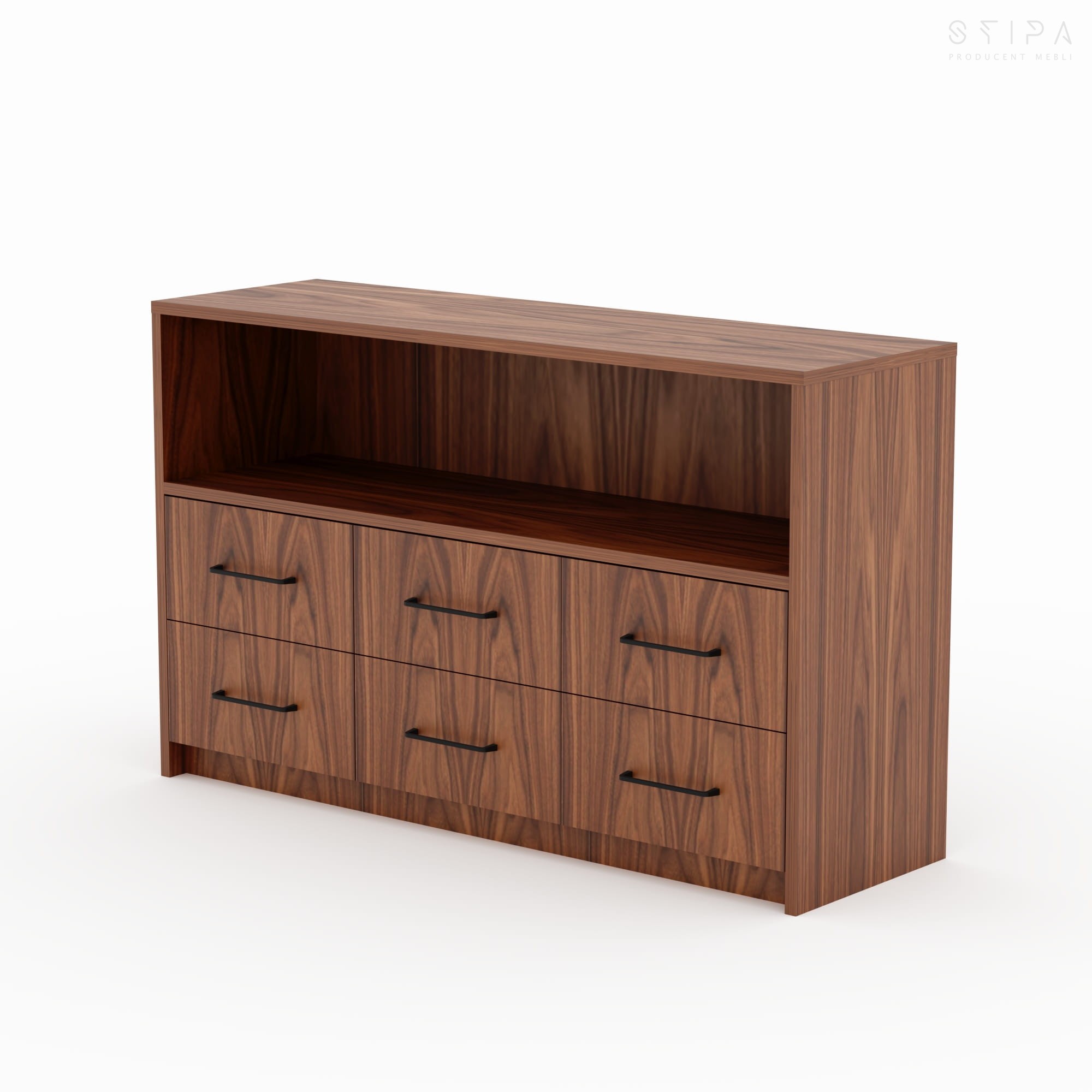 Ein besonderer Vorteil des Modells HEATHER ist das einzigartige, offene Fach, das sich ideal als Platz für Ihre Lieblingsbücher, Dekorationen oder Geräte für Ihren Wohnbereich eignet. Sechs geräumige Schubladen bieten diskreten Stauraum und helfen Ihnen dabei, makellose Ordnung zu halten.