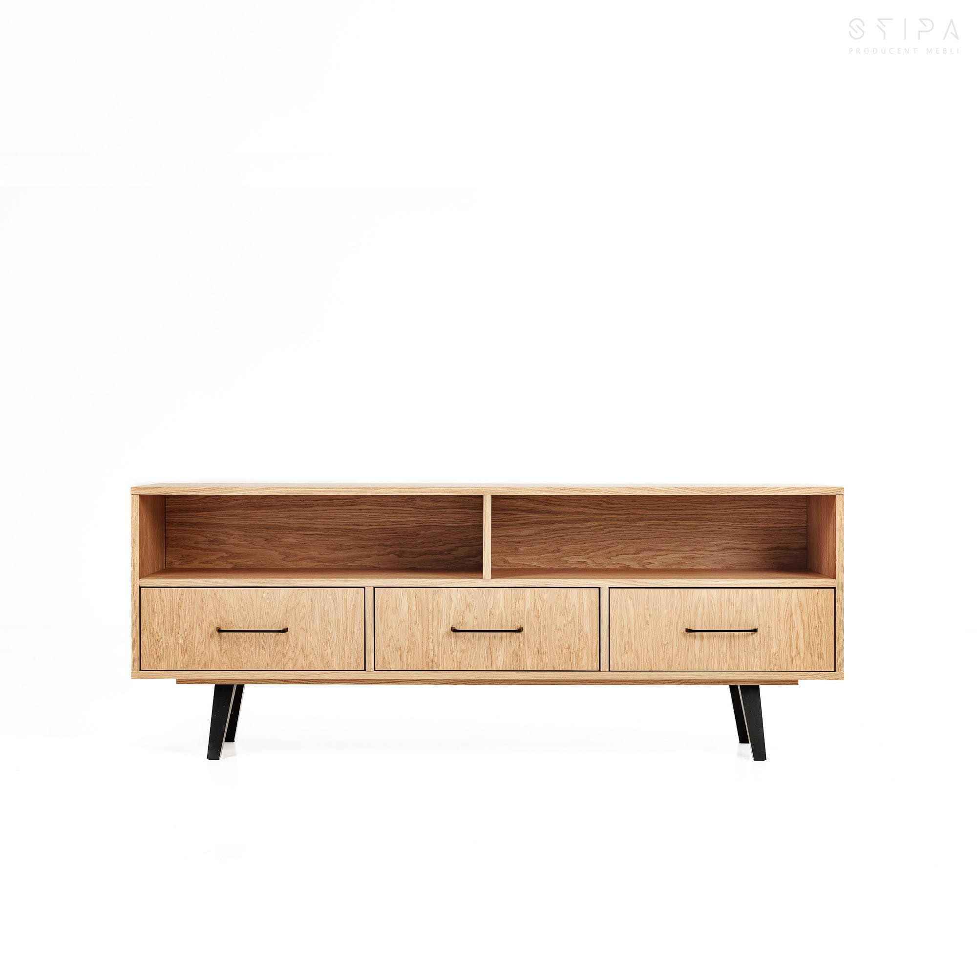 Diese Kombination aus Funktionalität und Stil wird in jedem Wohnzimmer mit Sicherheit auffallen. Die Kommode verfügt über 2 Einlegeböden und 3 Schubladen, ideal für die Aufbewahrung verschiedener Arten von Gegenständen. Natürliches Eichenfurnier verleiht den Möbeln ein klassisches Aussehen, das zu jeder vorhandenen Einrichtung passt.