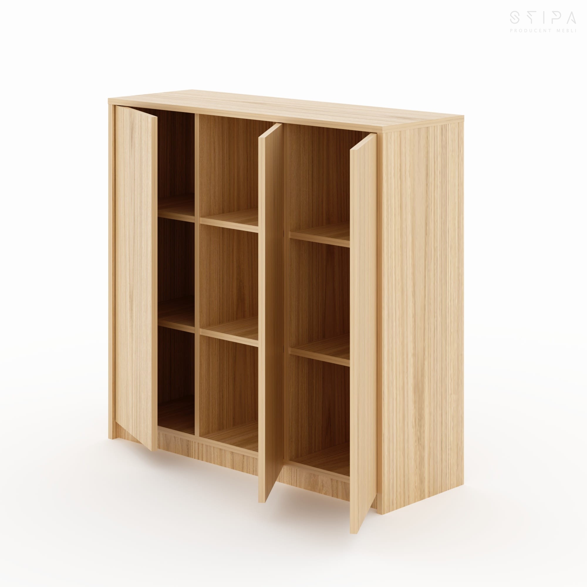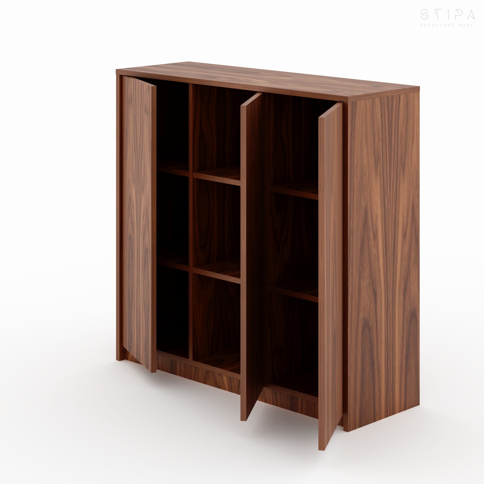 LOBELIA ist eine elegante, moderne Kommode mit klarer, architektonischer Form – entworfen für Premium-Interieurs. Drei vollflächige Fronten sorgen für Ordnung und eine ruhige, minimalistische Linie, während der großzügige Innenraum mit Einlegeböden das komfortable Verstauen von Geschirr, Dokumenten, Textilien oder RTV-/Multimedia-Zubehör ermöglicht. Dank der großen Auswahl an Oberflächen (Eiche-Furnier, Nussbaumfurnier, gebeizte Furniere sowie lackiertes MDF) lässt sich LOBELIA perfekt an Stil und Farbwelt des gesamten Interieurs anpassen.