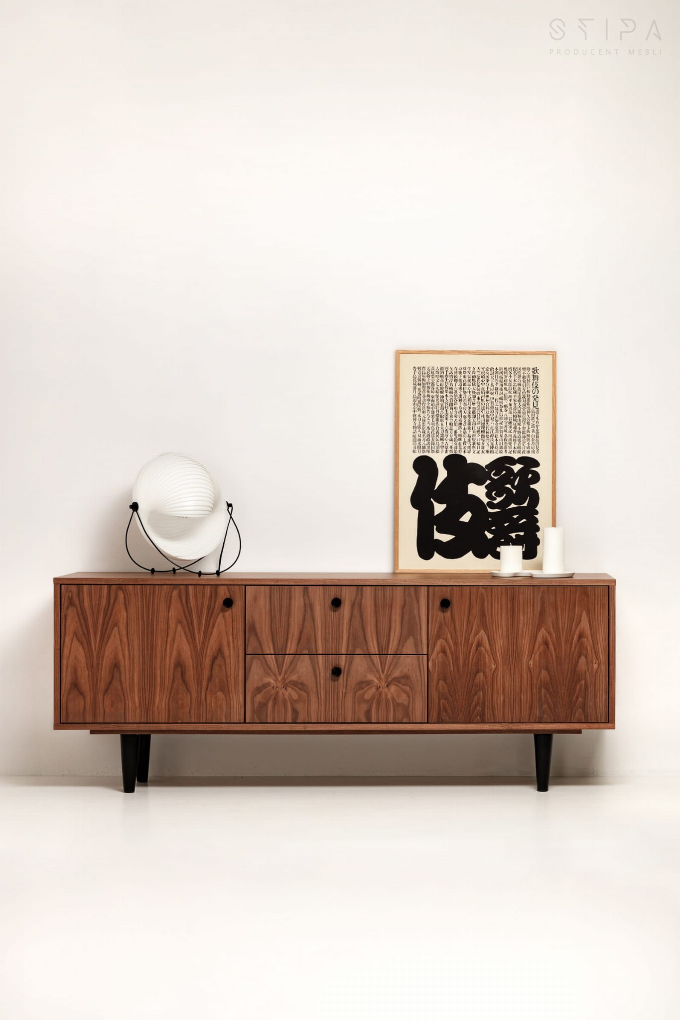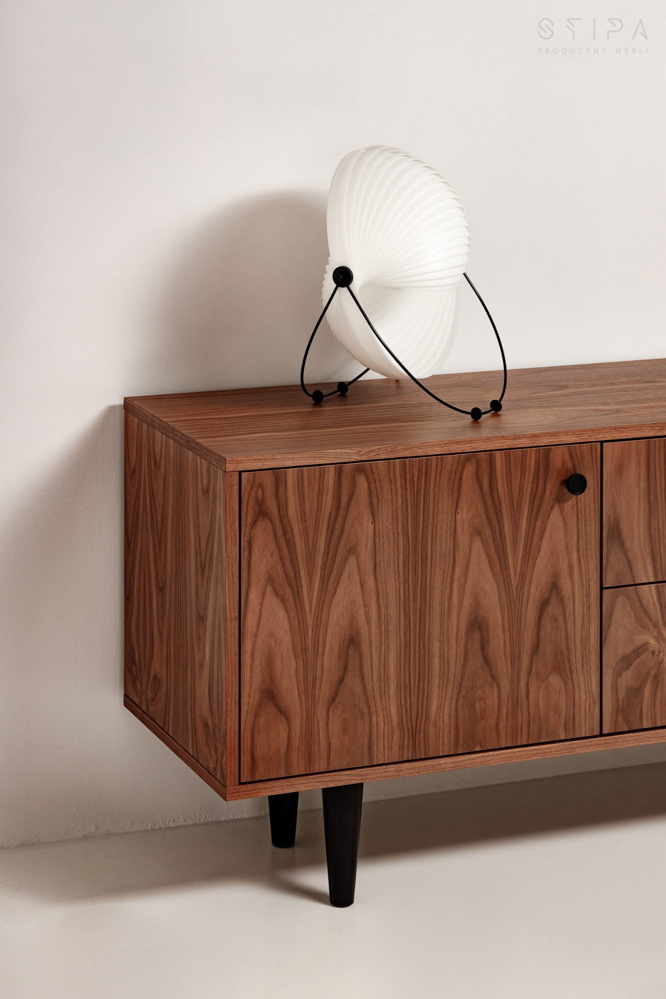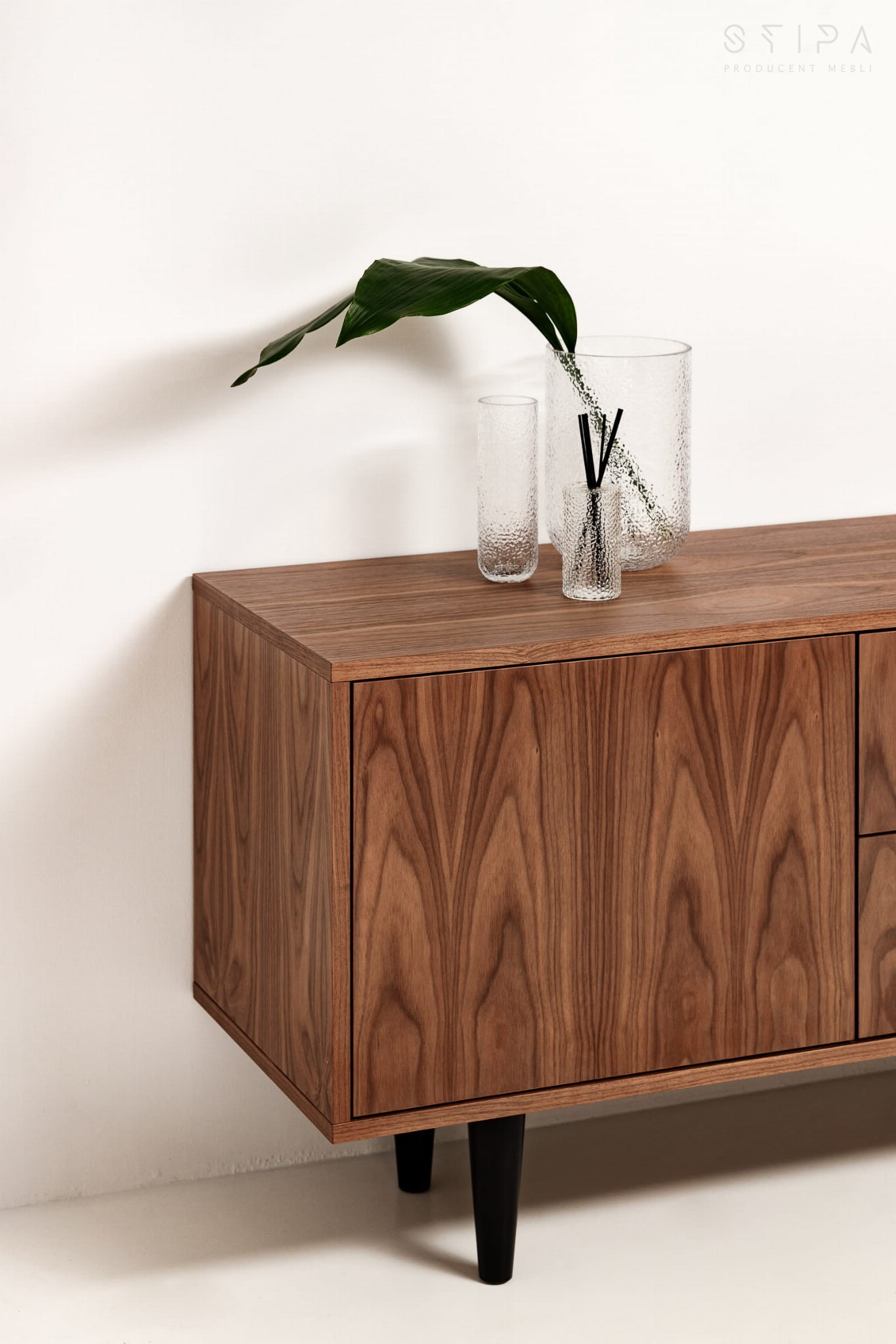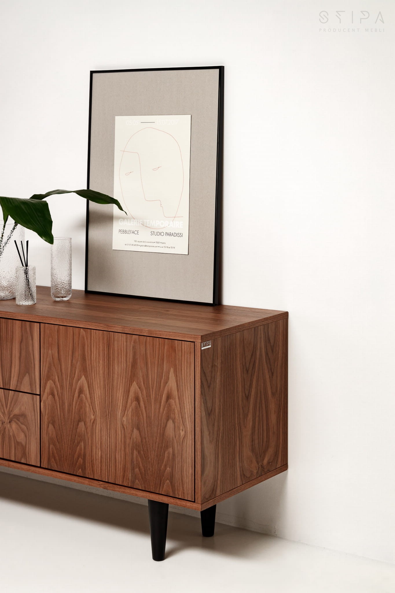 Stilvolle Schiebekommode passt zu vielen Innenräumen. Es sieht in einem klassischen, modernen und minimalistischen Raum großartig aus. Der Korpus der Kommode besteht aus amerikanischem Nussbaum, der sich durch eine hervorragende Verarbeitung auszeichnet. Sie können zwischen Holzbeinen oder einem Furniersockel wählen. Die Möbel werden ohne Griffe und Beine an den Kunden verschickt. Glücklicherweise ist der Aufbau so einfach, dass jeder damit umgehen kann.