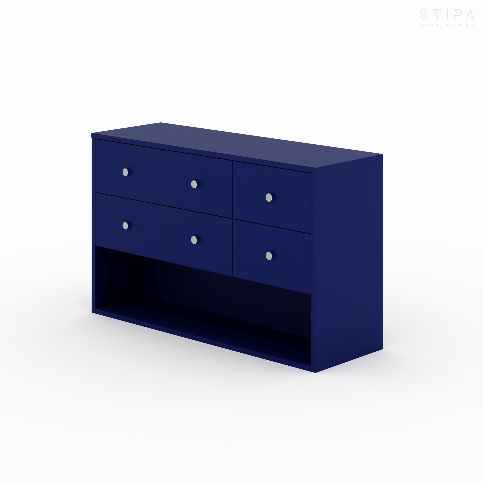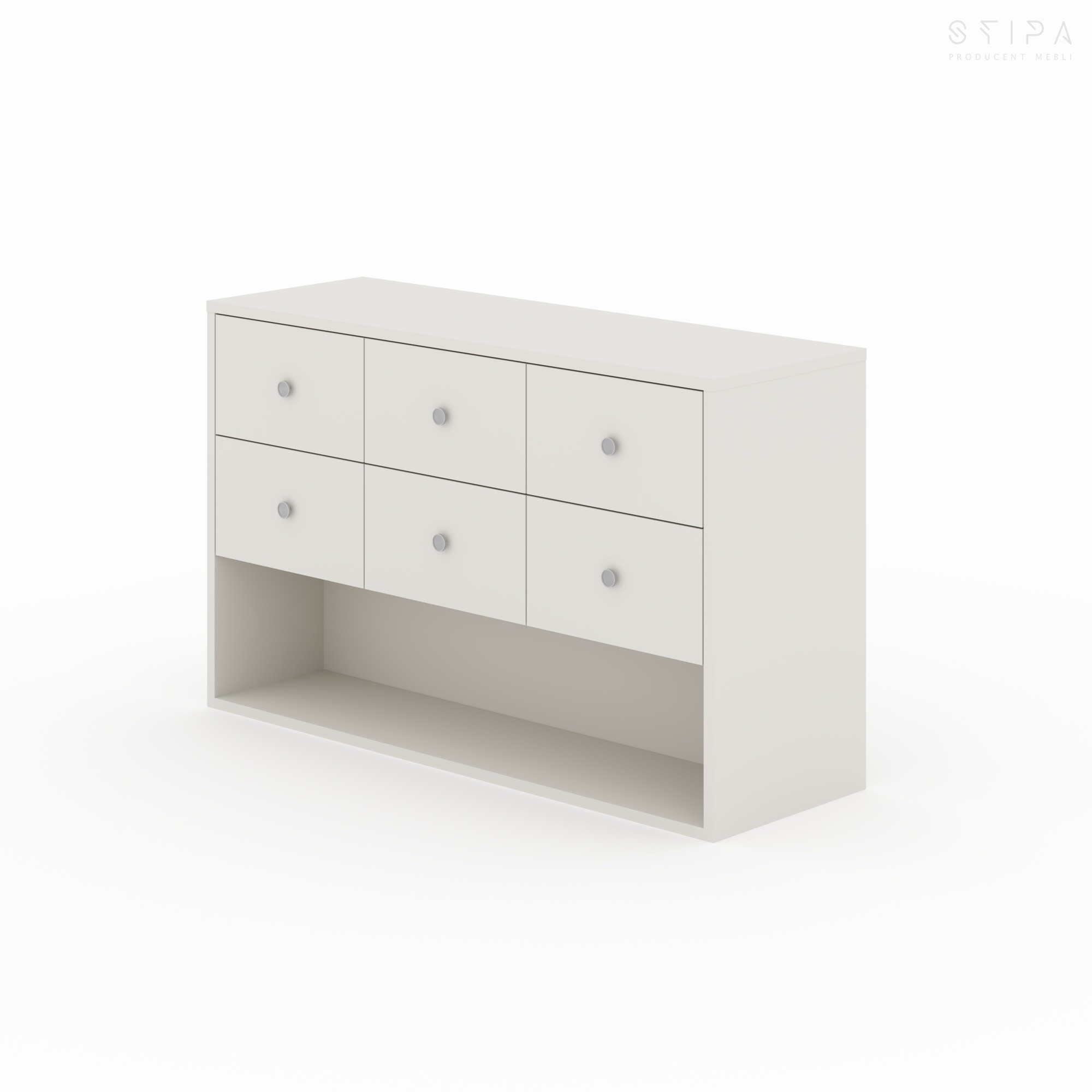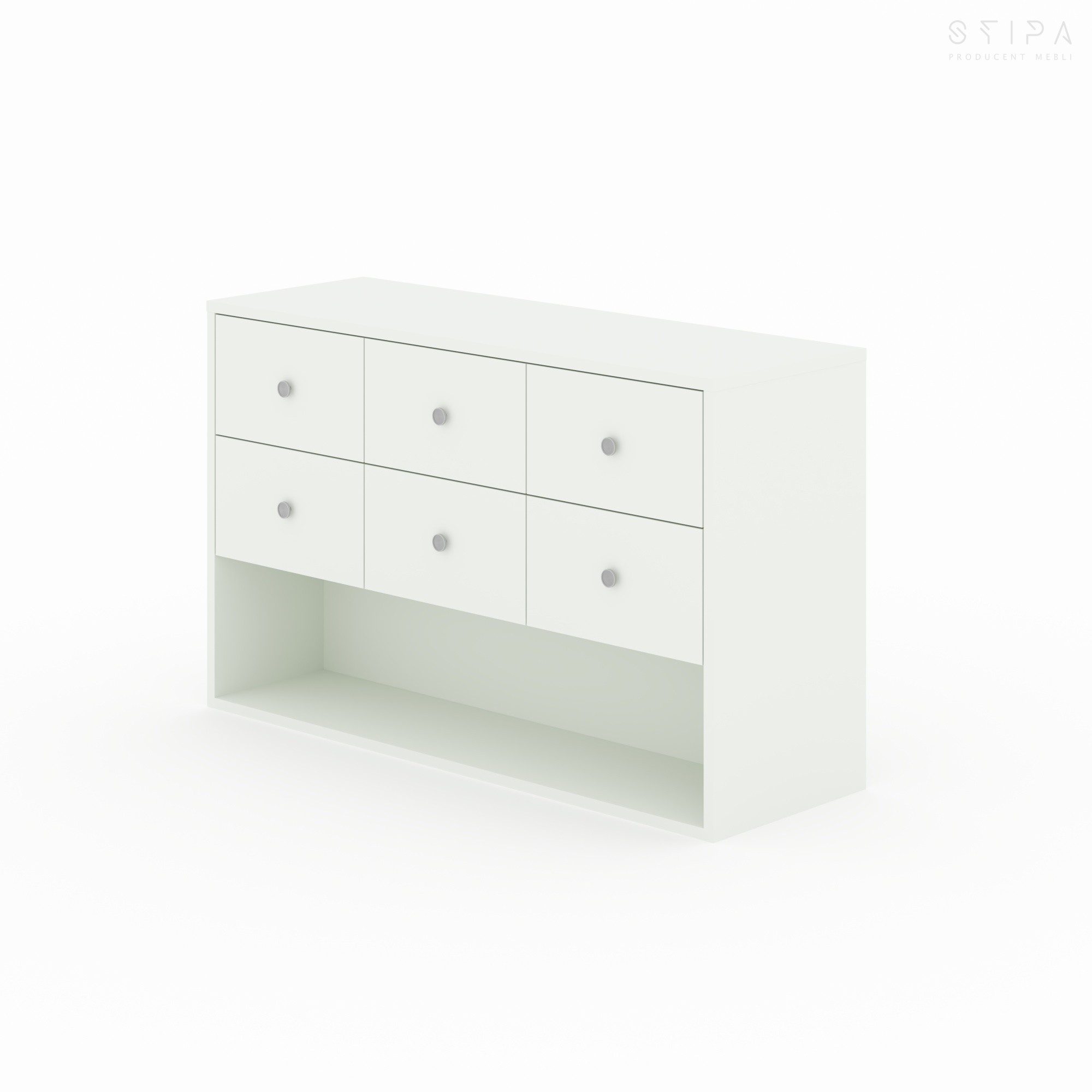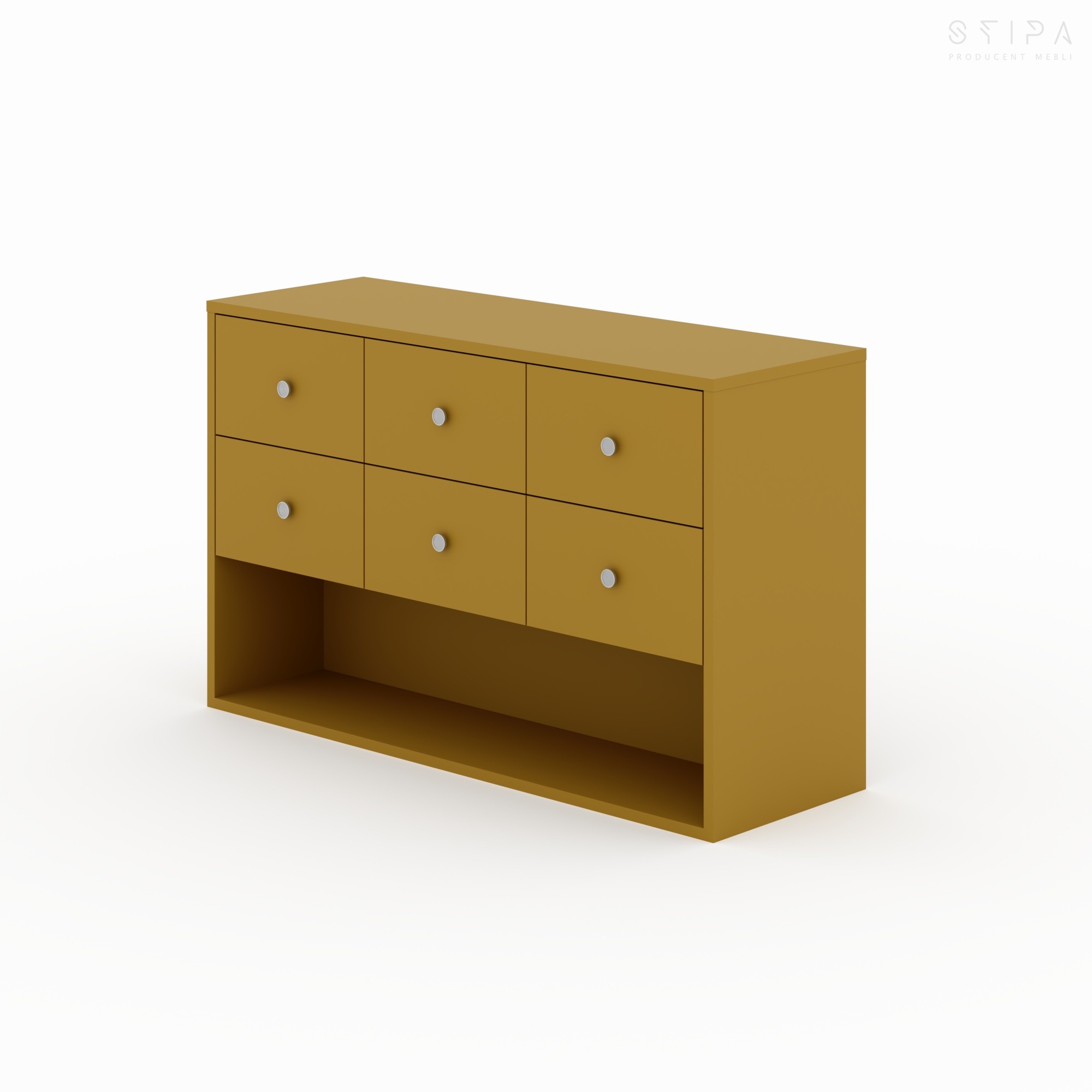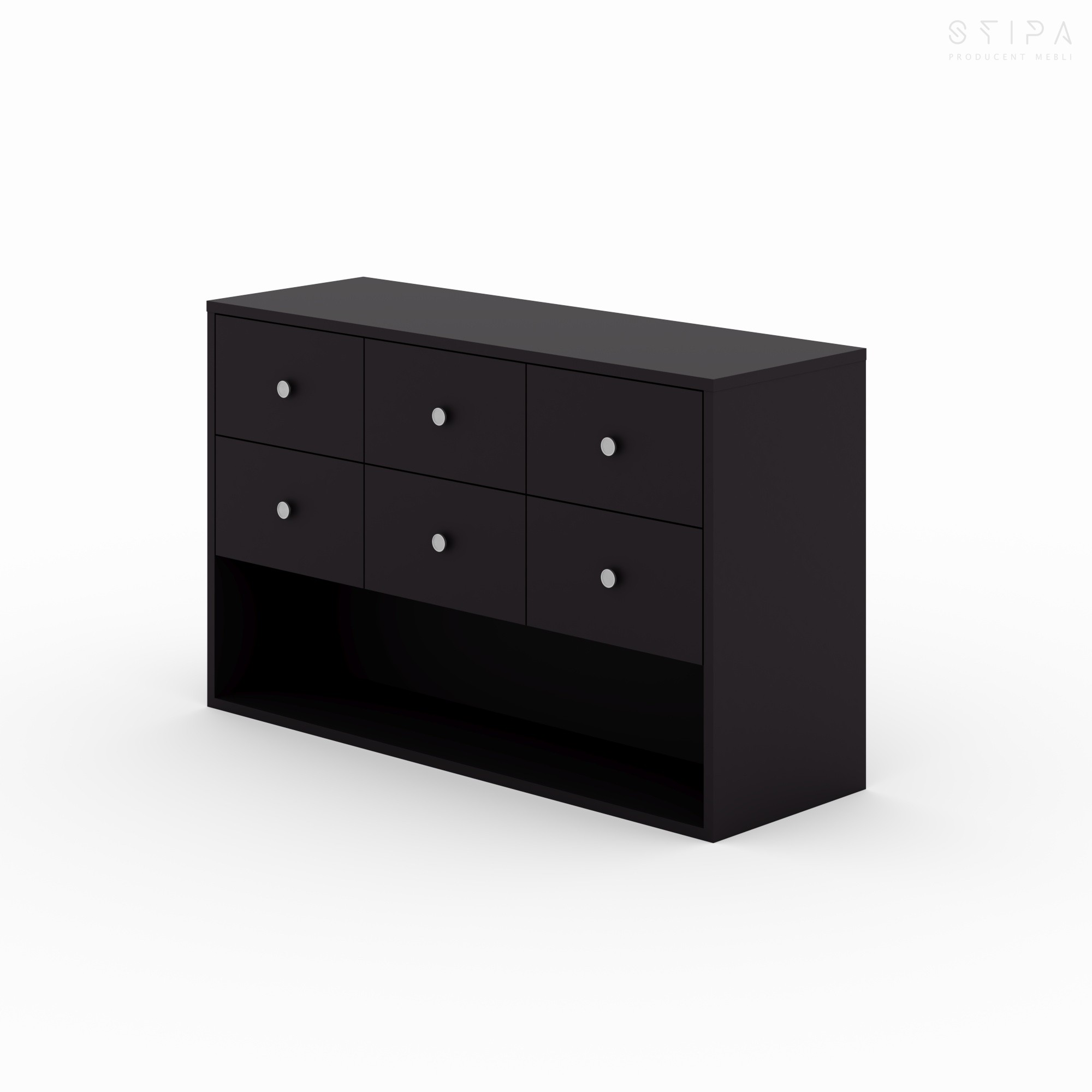 FUCHSIA is an elegant chest of drawers with a modern, architectural silhouette that combines minimalist design with everyday functionality. The layout of 6 drawers makes it easy to organize documents, textiles, and accessories, while the open niche at the bottom beautifully displays books, albums, décor, or baskets. Designed for premium interiors, it remains discreet yet distinctive thanks to its generous surfaces and visible wood grain.