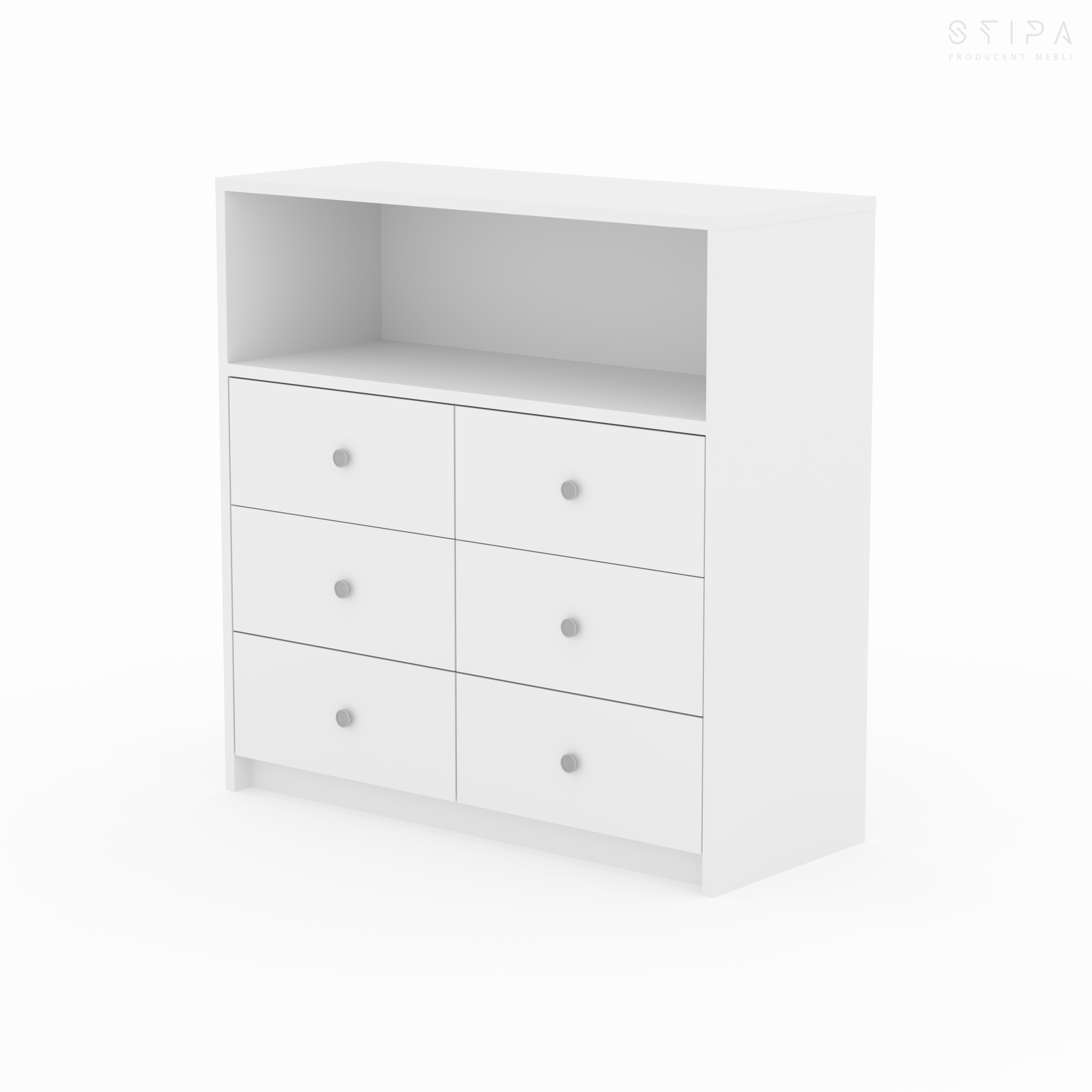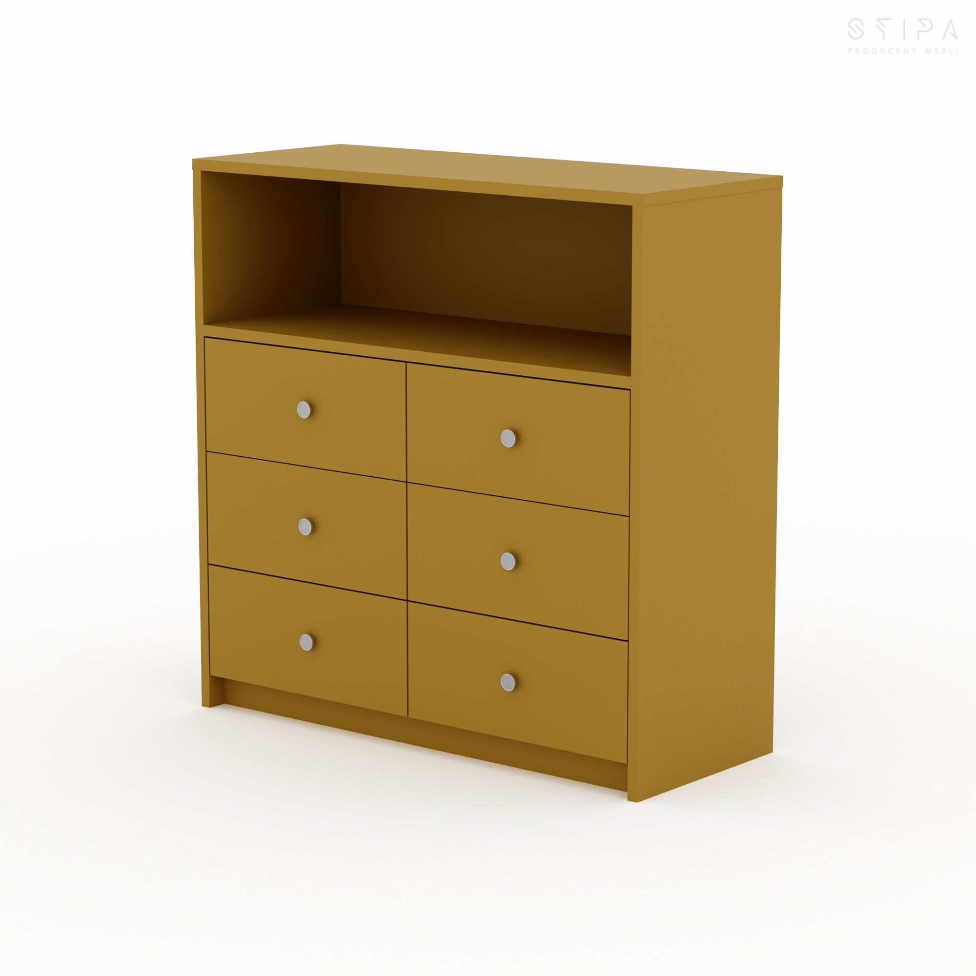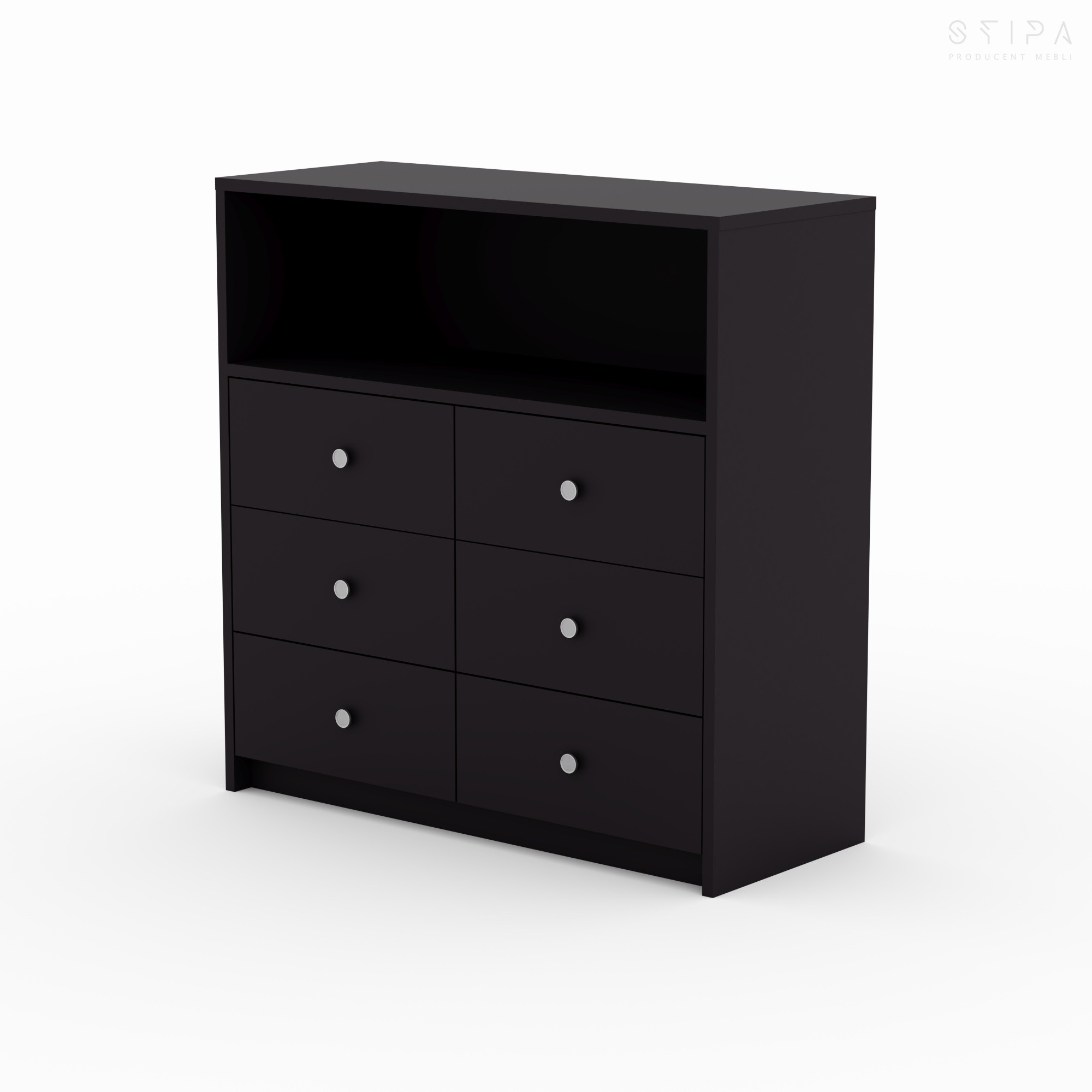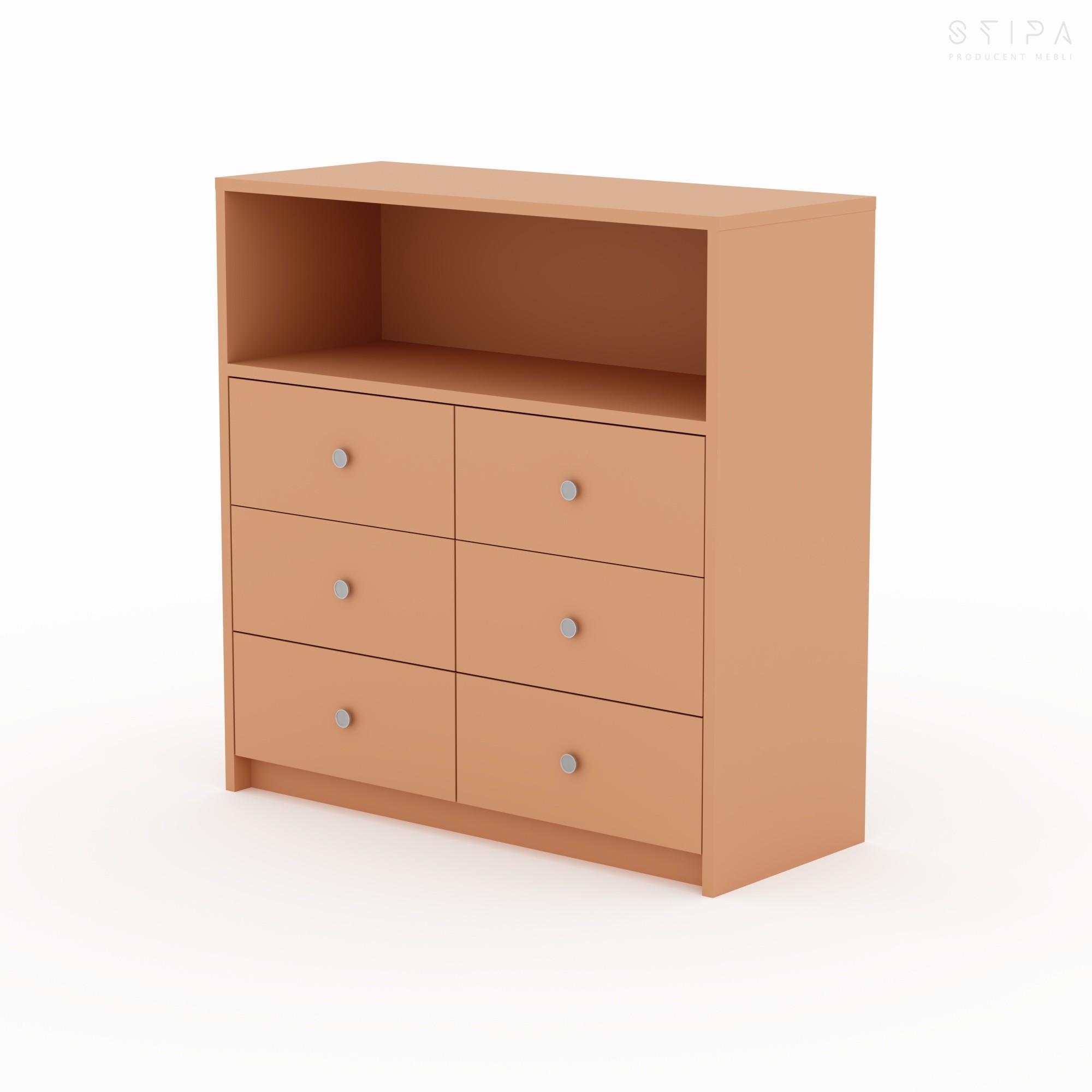 Discover the harmony of form and functionality with the GERBERA piece – a proposal that brings premium quality to every interior. This unique veneered chest of drawers has been designed for those who appreciate stylish design and practical space organization. The furniture construction consists of an upper open segment, perfect for your favorite books, decorations, or A/V equipment, and six spacious drawers that provide excellent storage for small items, clothes, or documents.