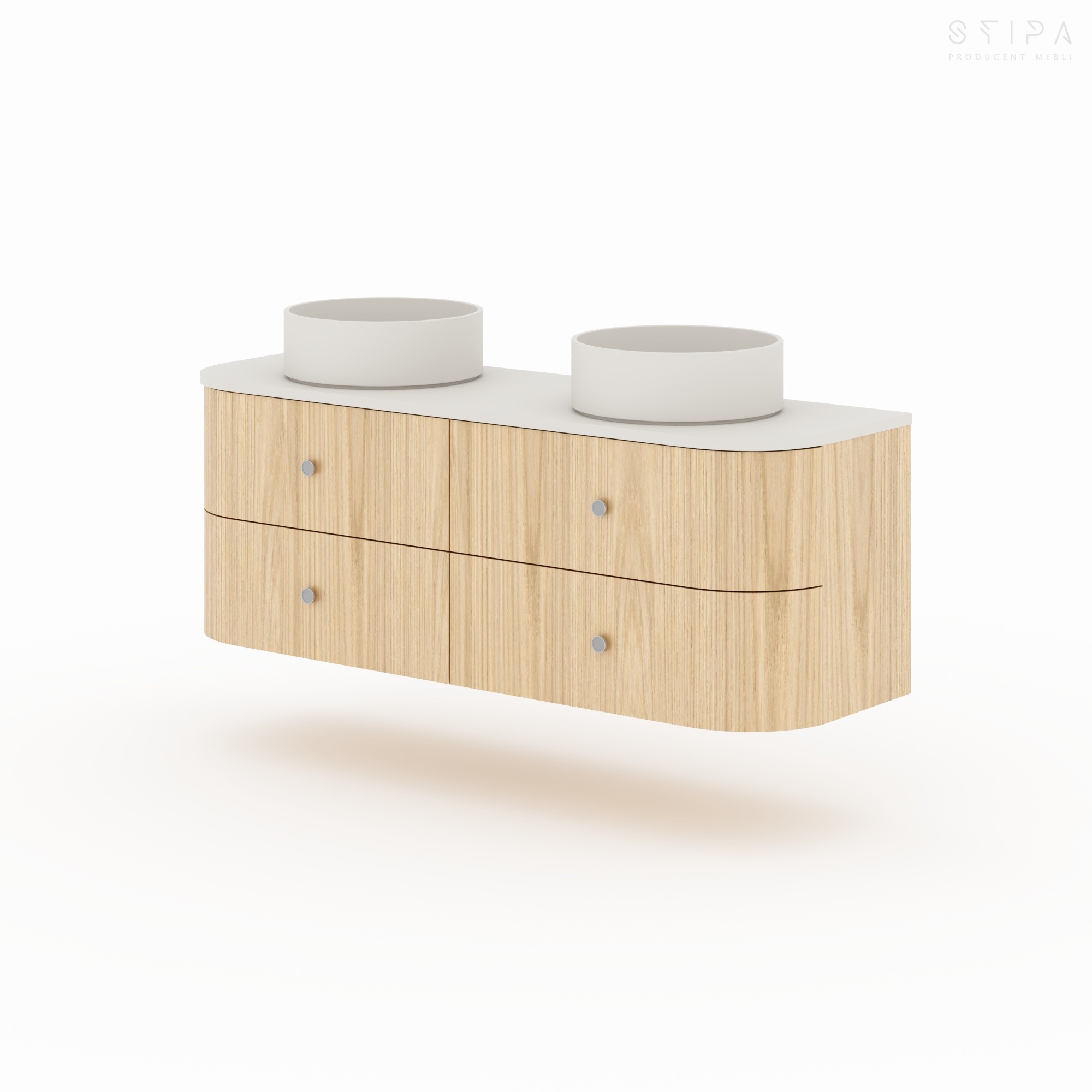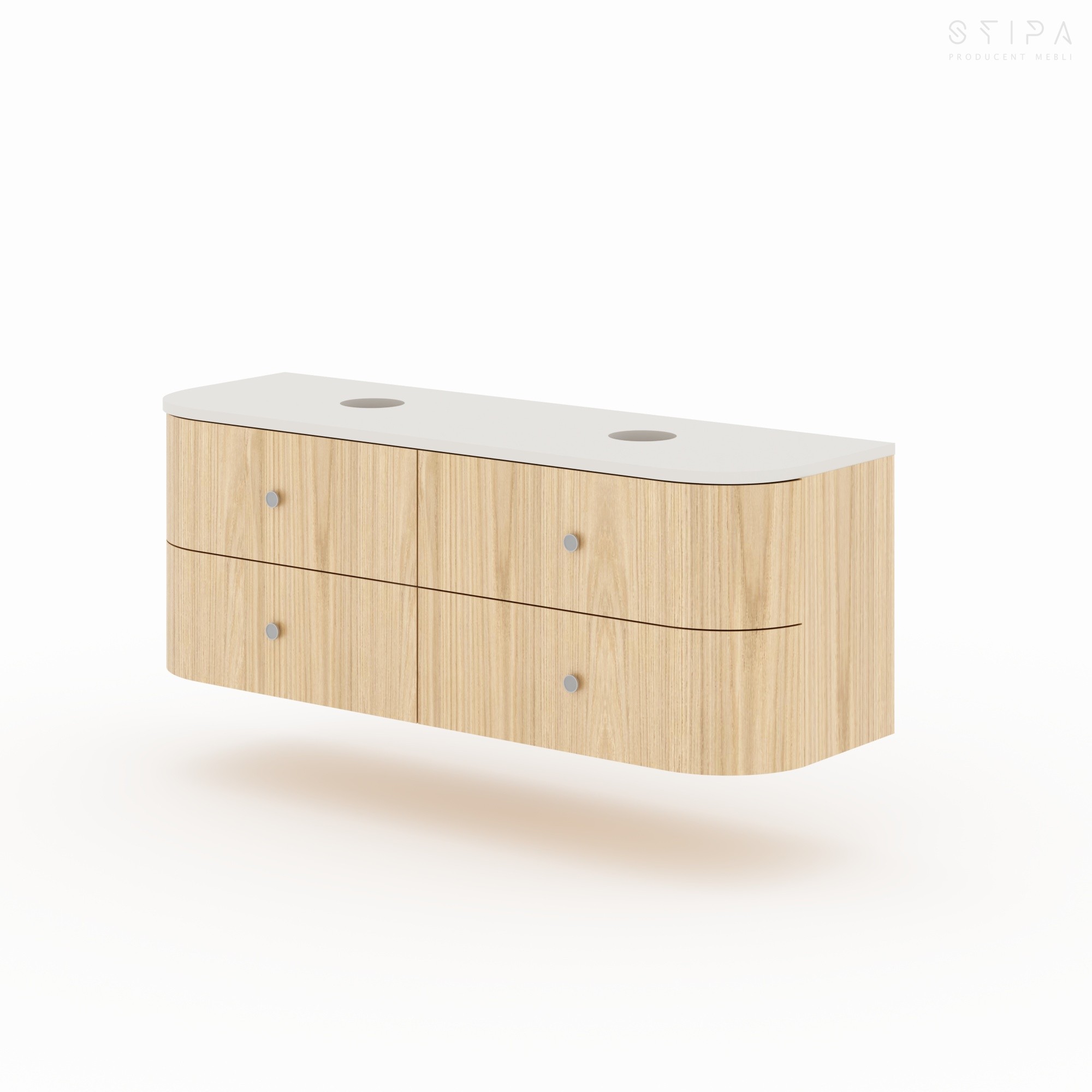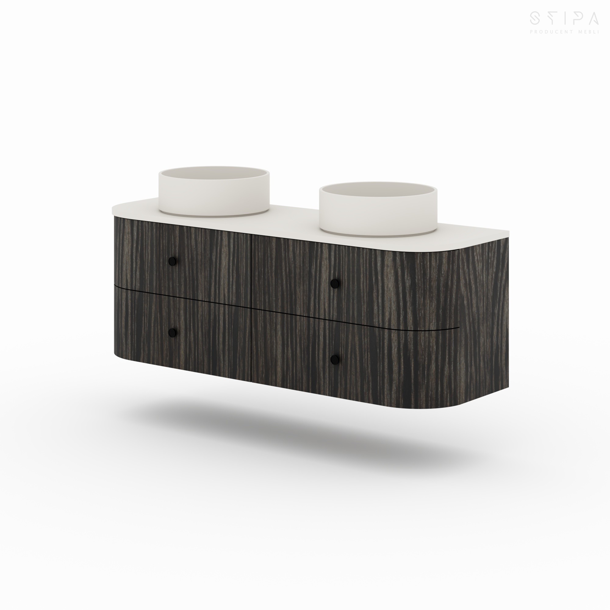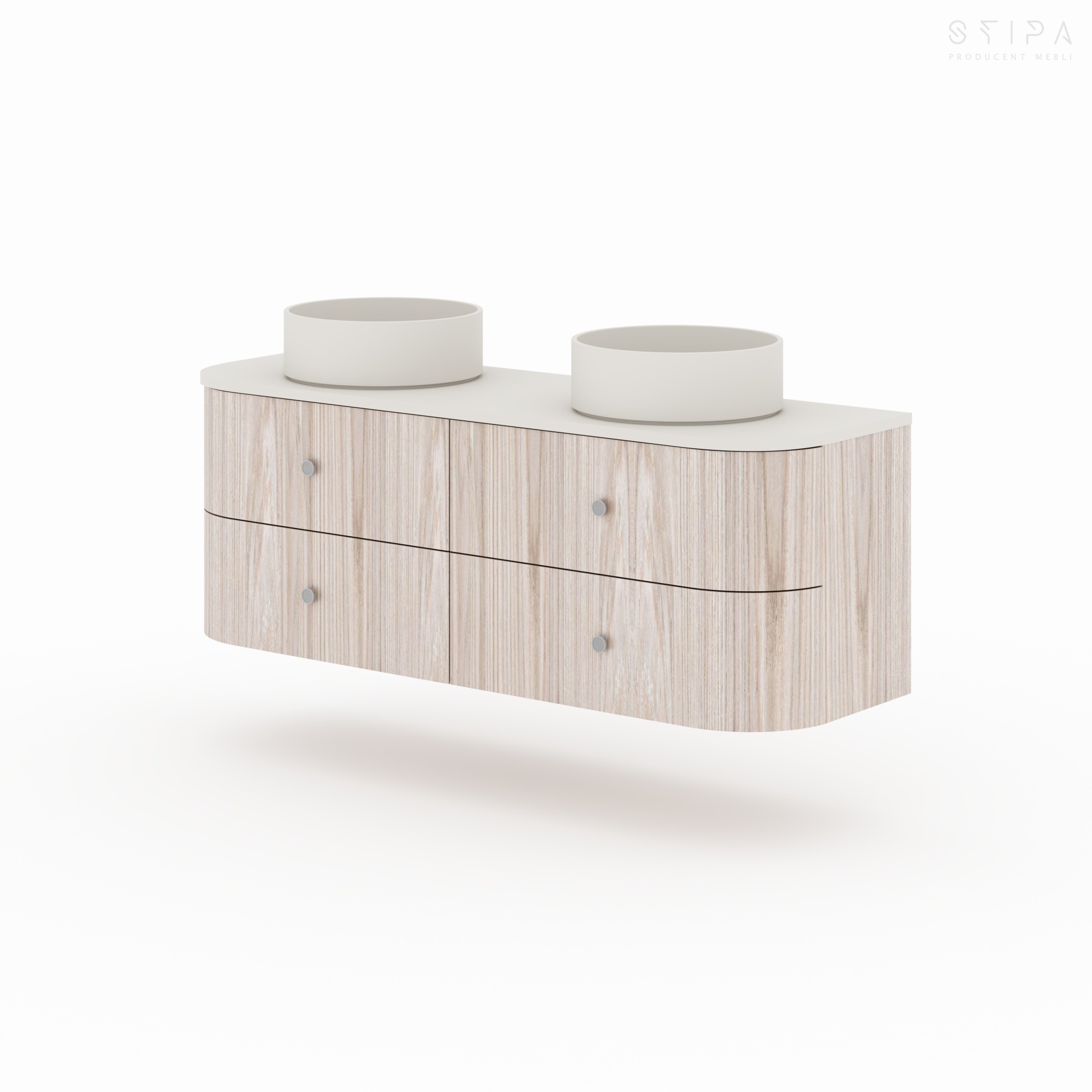 GLORIOSA is an elegant bathroom vanity unit for double basins, designed for interiors where both aesthetics and everyday comfort matter. Its form is distinguished by soft lines, rounded sides and carefully balanced proportions, giving the piece a light, modern and highly stylish appearance. It is an excellent choice for those looking for luxury premium bathroom furniture that enhances the character of the interior and brings refined elegance into the space.