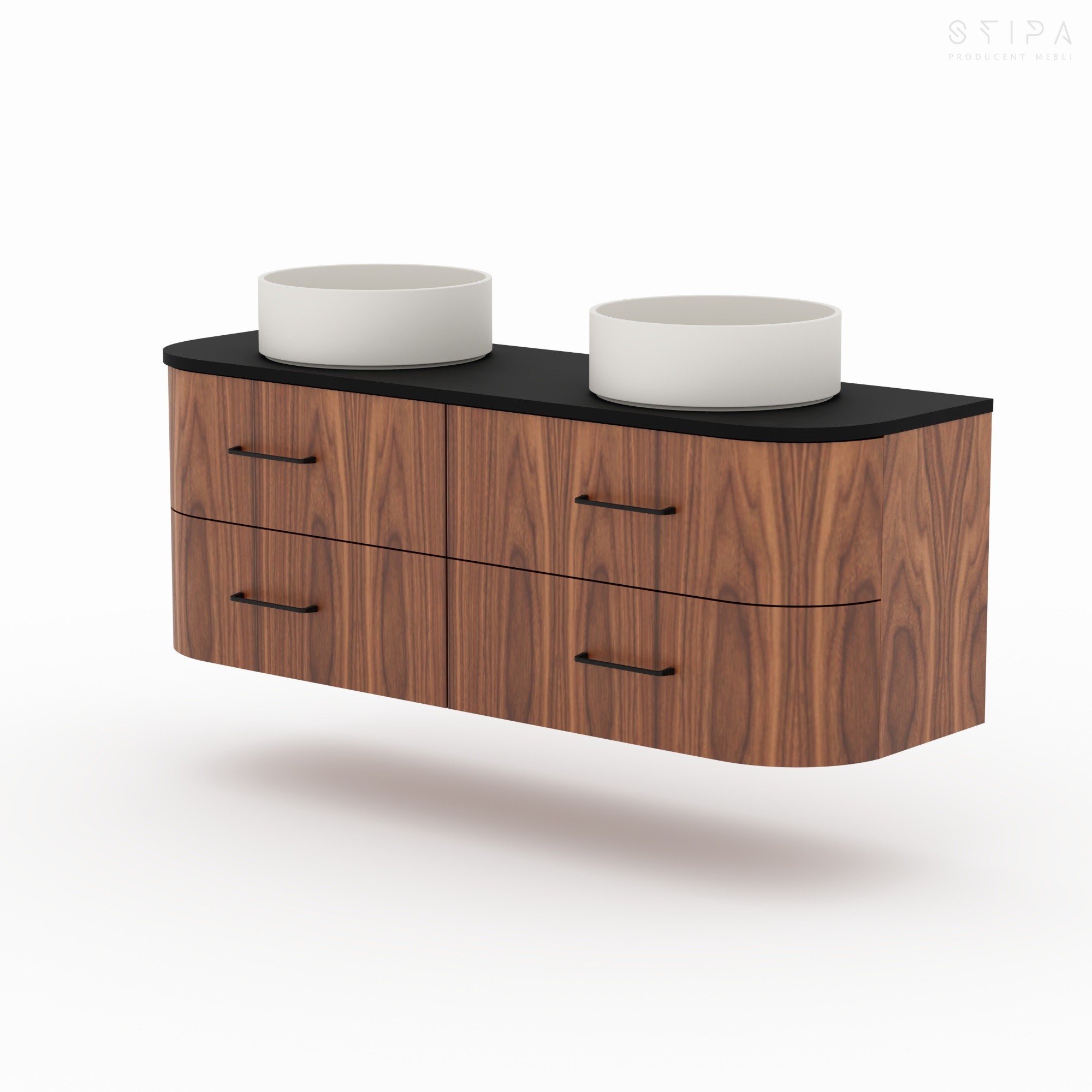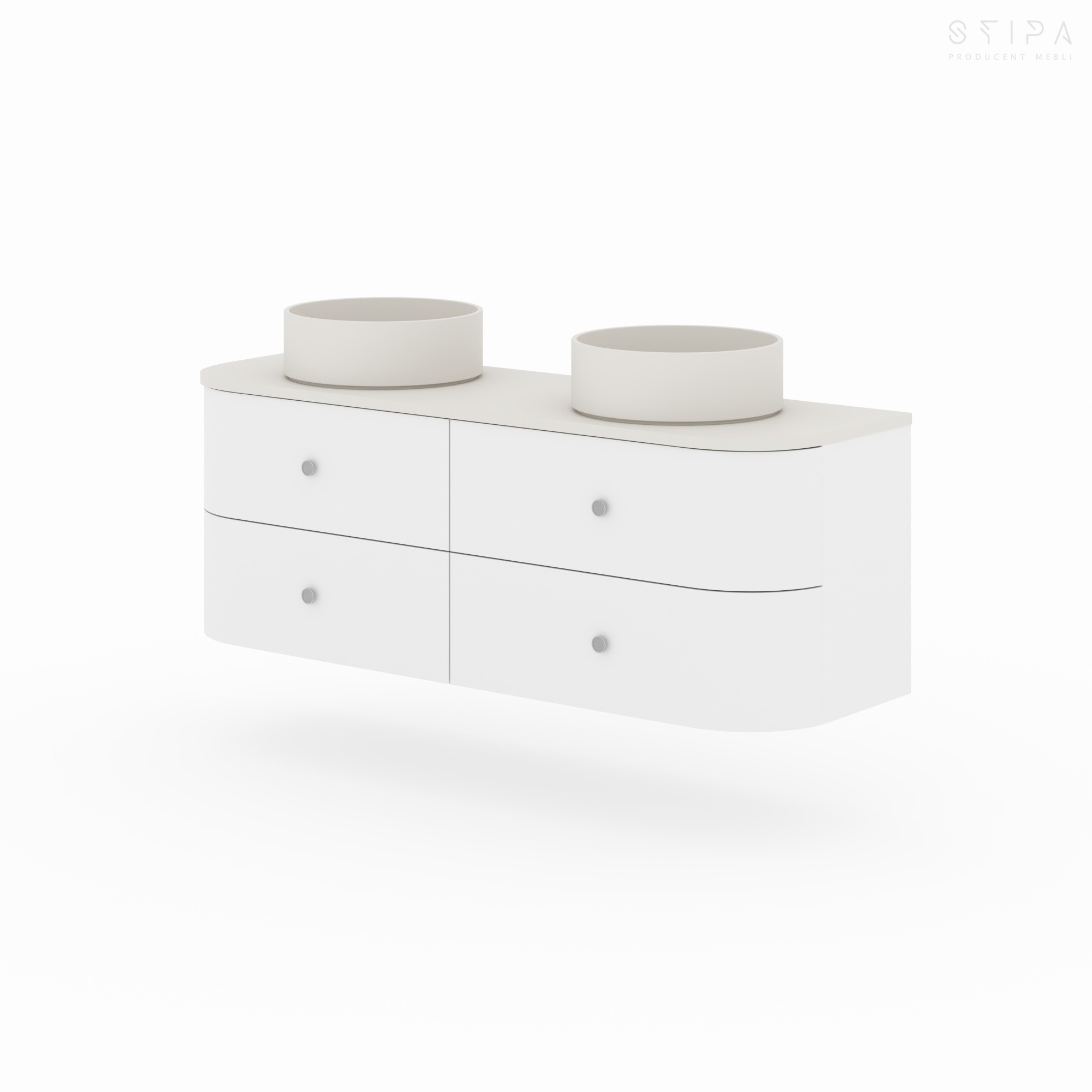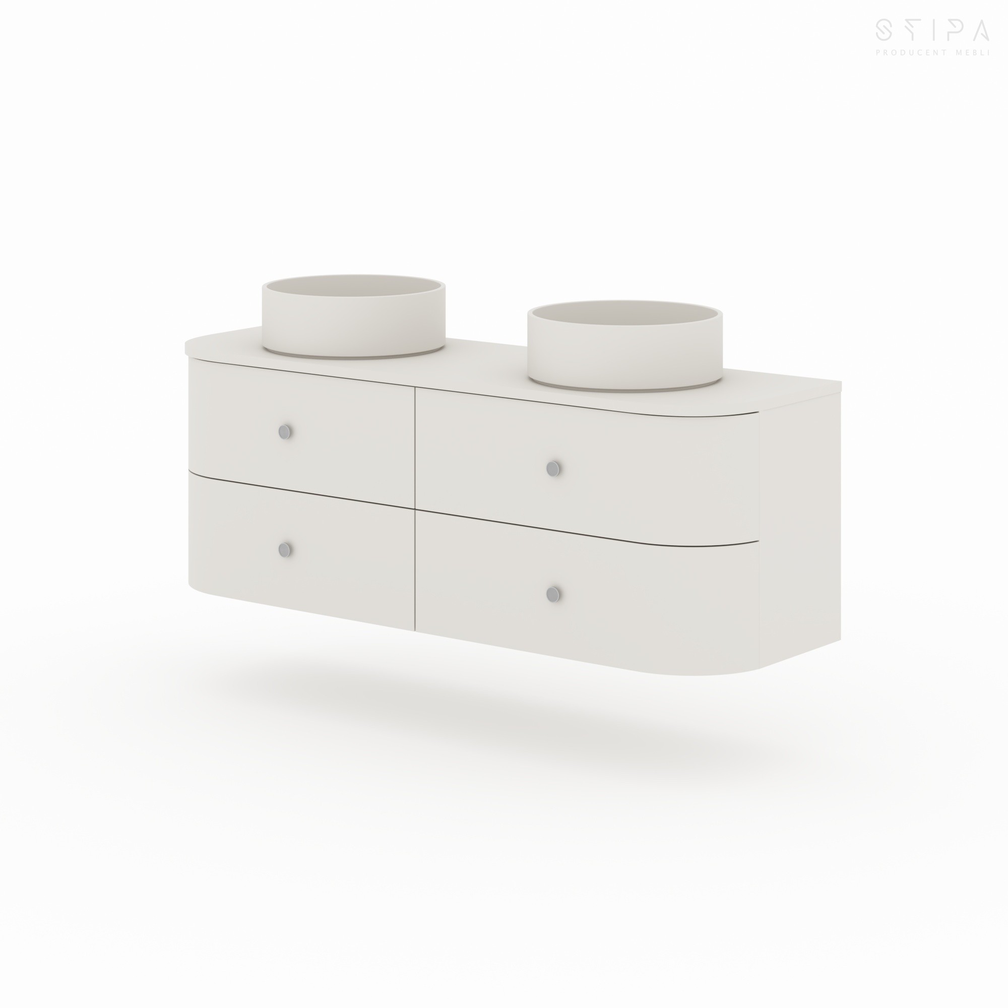 GLORIOSA is an elegant bathroom vanity unit for double basins, designed for interiors where both aesthetics and everyday comfort matter. Its form is distinguished by soft lines, rounded sides and carefully balanced proportions, giving the piece a light, modern and highly stylish appearance. It is an excellent choice for those looking for luxury premium bathroom furniture that enhances the character of the interior and brings refined elegance into the space.