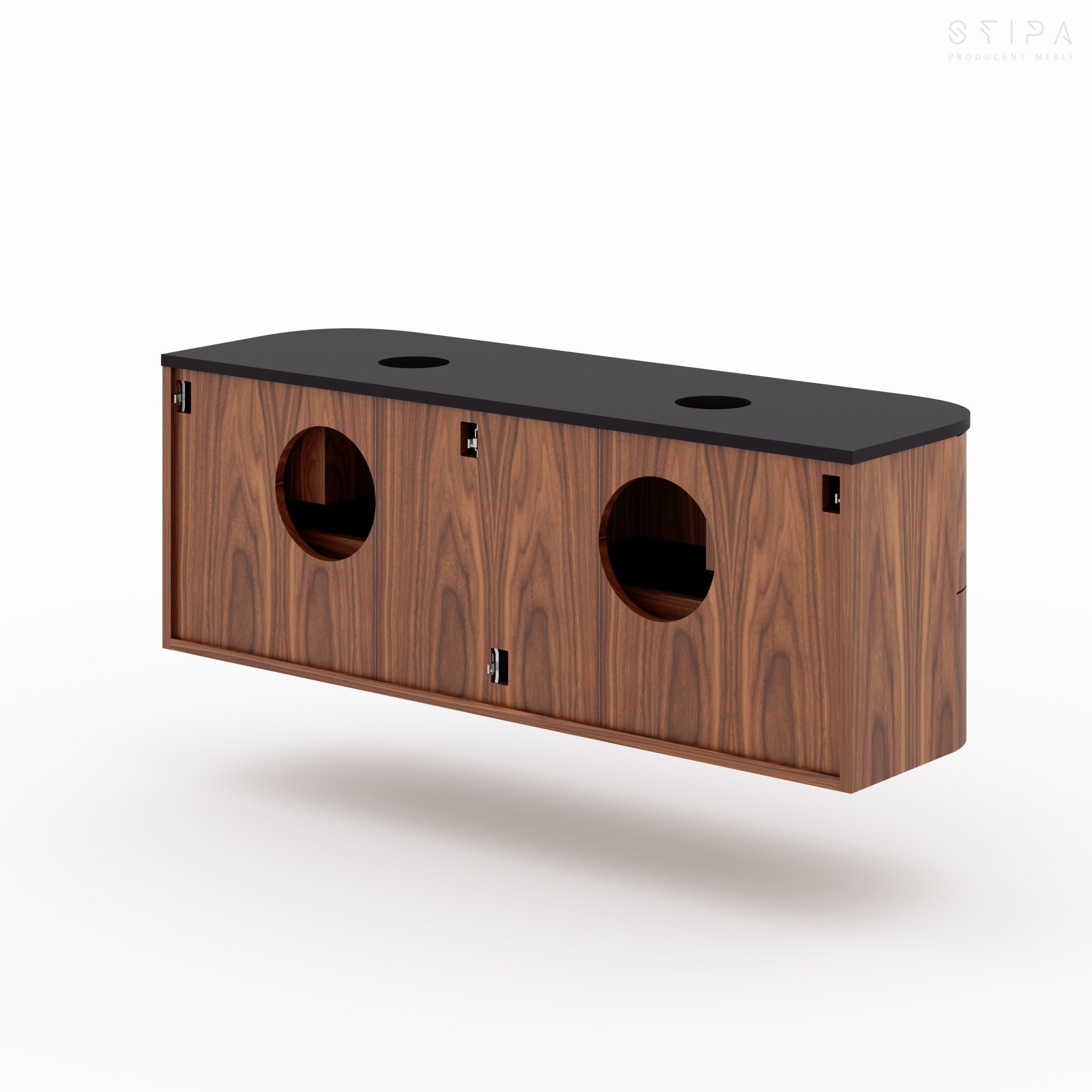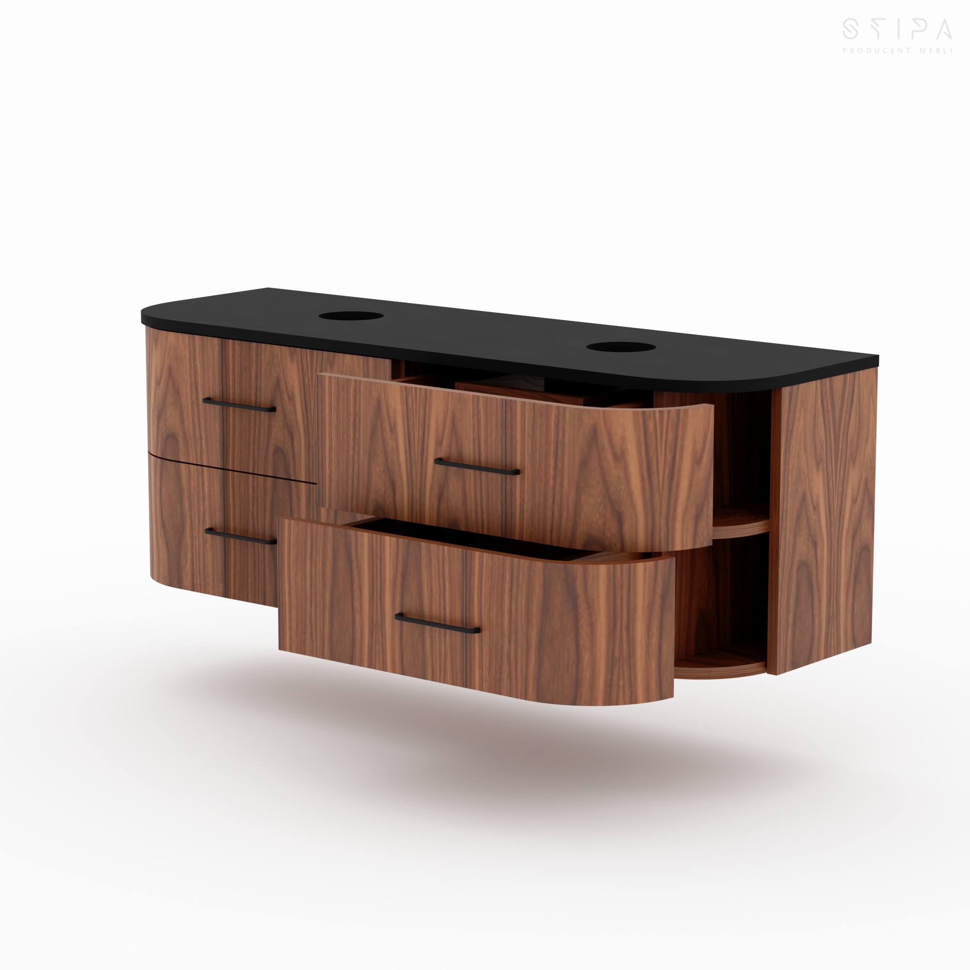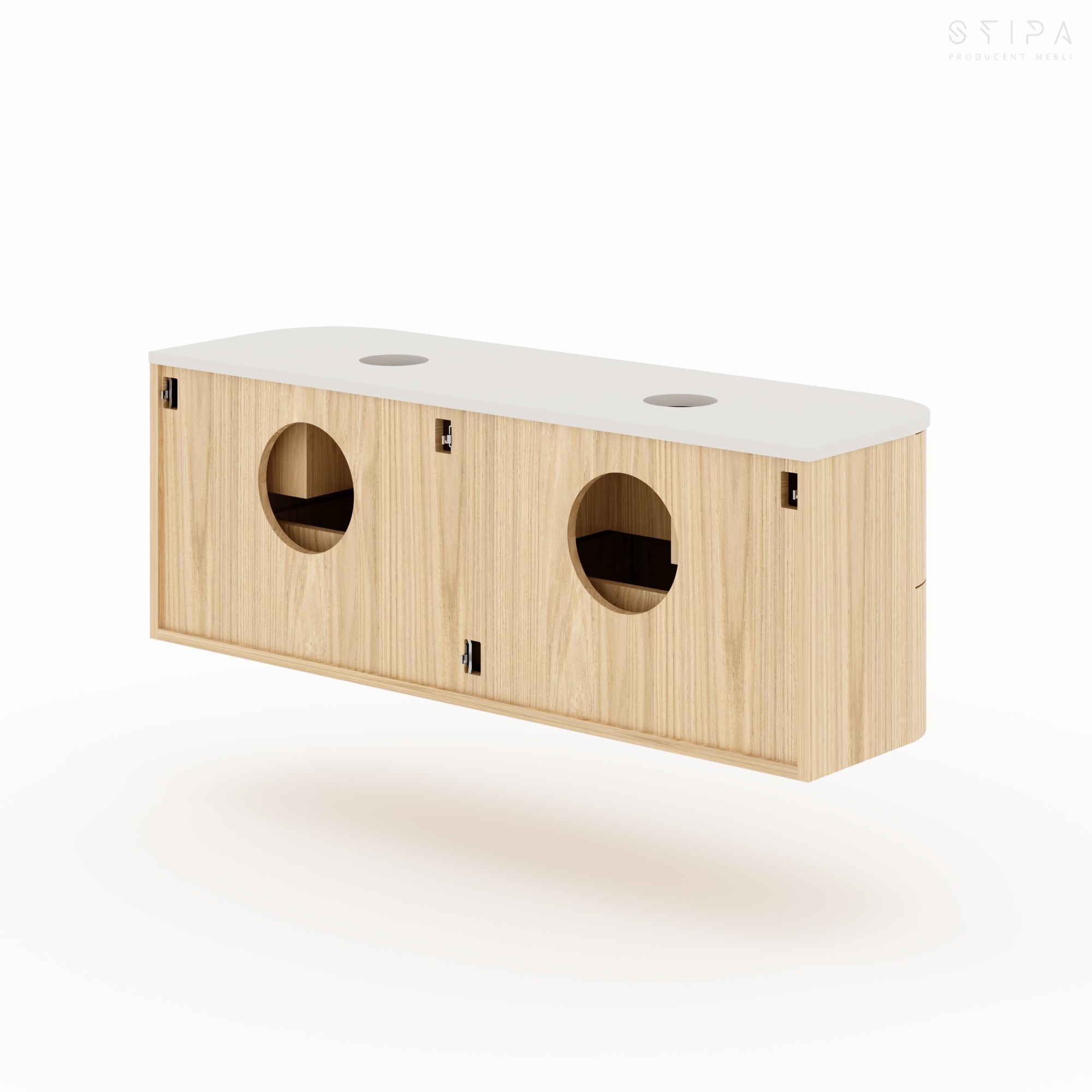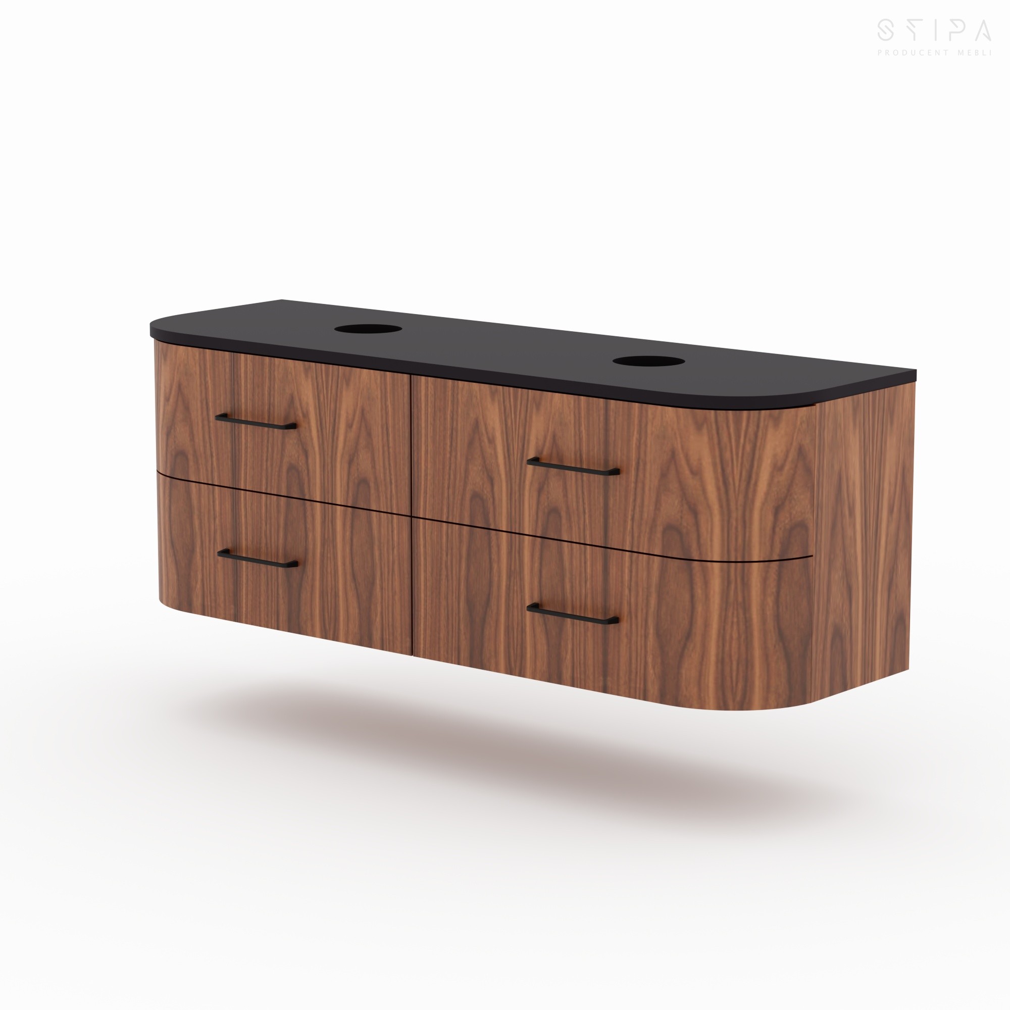 GLORIOSA is an elegant bathroom vanity unit for double basins, designed for interiors where both aesthetics and everyday comfort matter. Its form is distinguished by soft lines, rounded sides and carefully balanced proportions, giving the piece a light, modern and highly stylish appearance. It is an excellent choice for those looking for luxury premium bathroom furniture that enhances the character of the interior and brings refined elegance into the space.