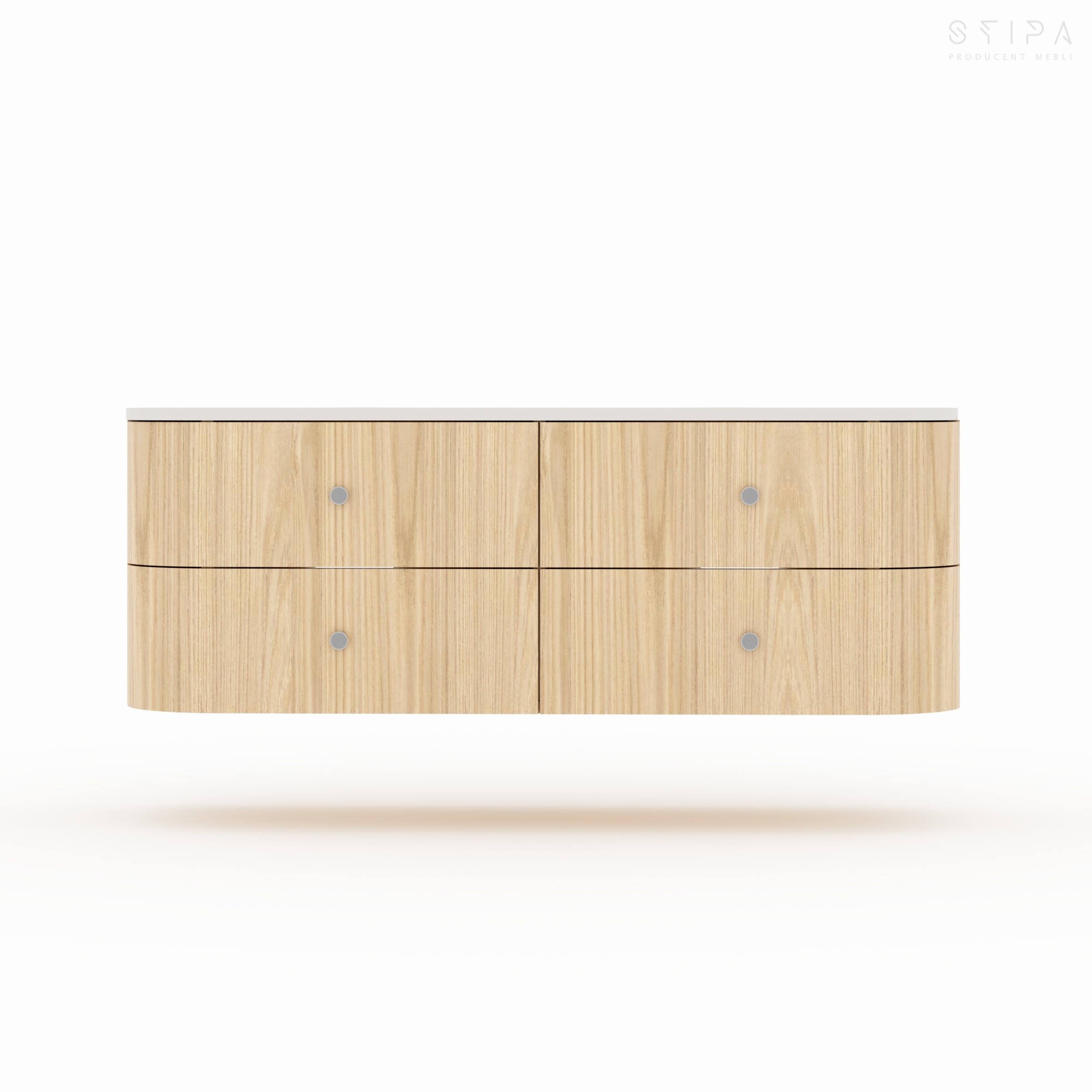 The most distinctive feature of the GLORIOSA vanity unit is its harmonious, rounded form. Rounded edges soften the overall silhouette, while the entire design feels exceptionally elegant and modern. It is precisely this detail that makes the piece look more exclusive than classic geometric models.