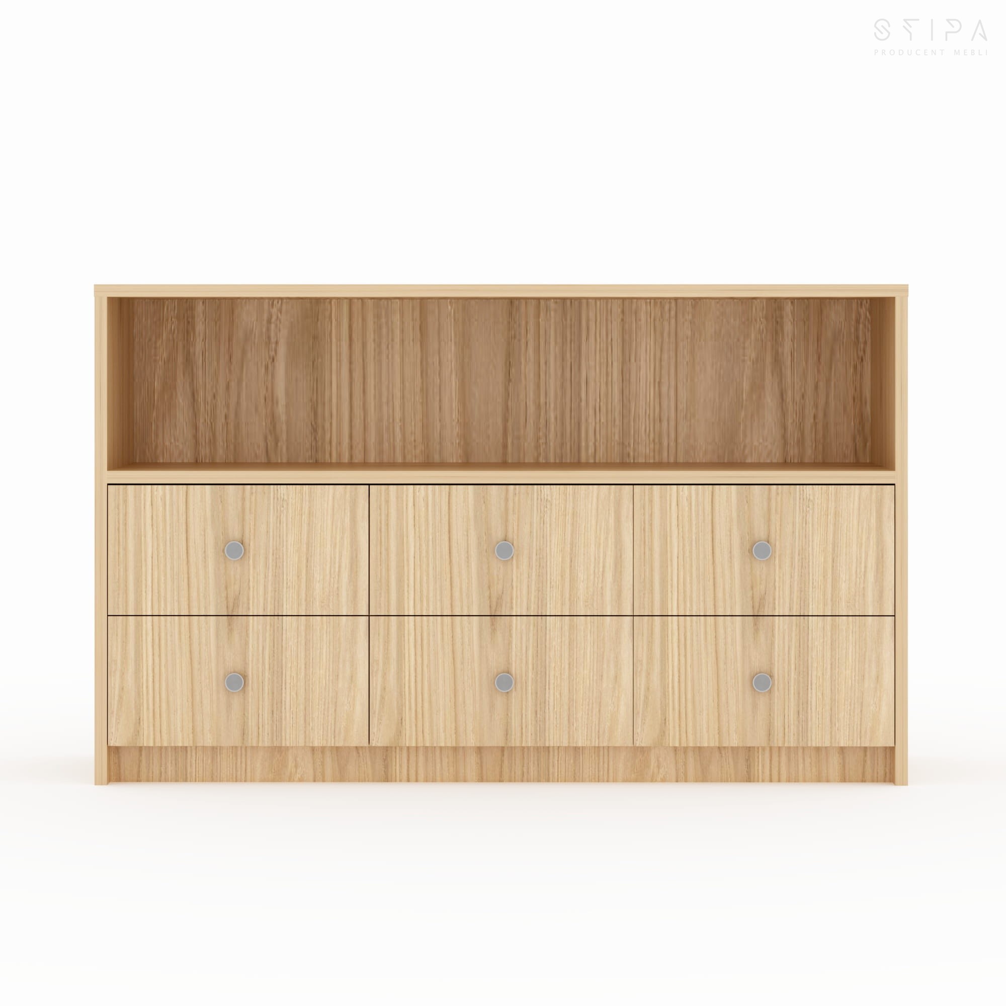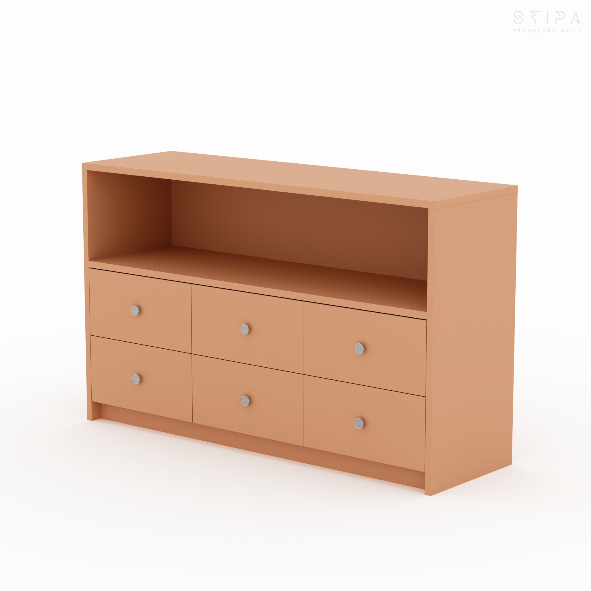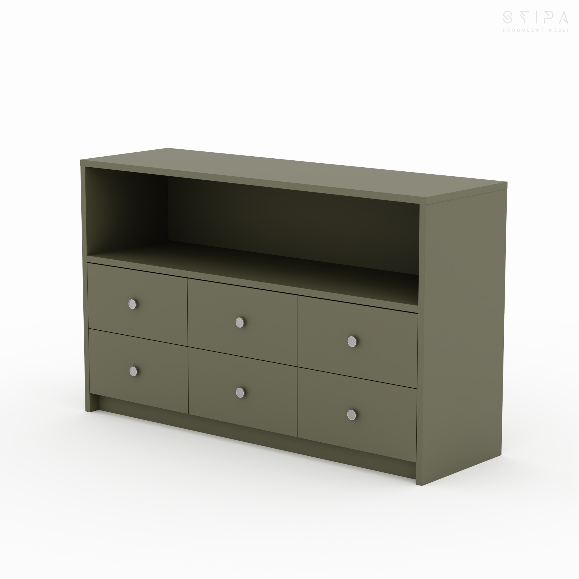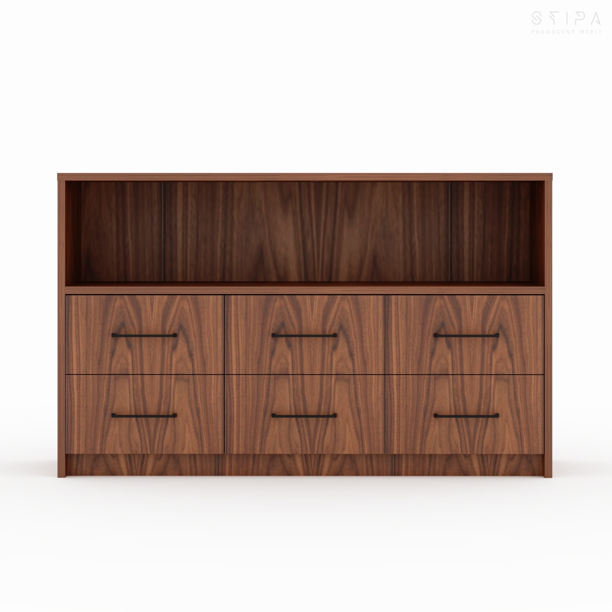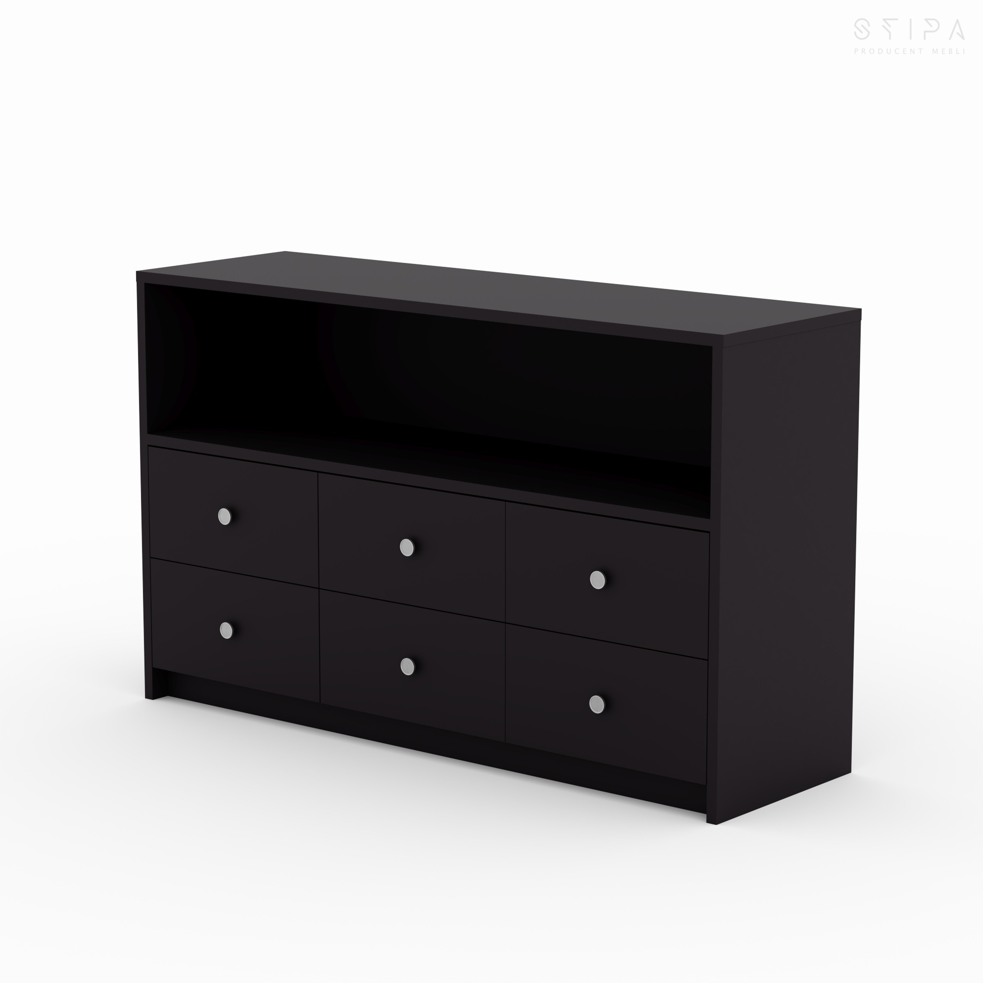 The advantage of the HEATHER model is its unique open-shelf compartment, which is perfect for storing your favorite books, decorations, or electronics essential in your living area. Six spacious drawers provide discreet storage space, helping you maintain perfect order at home.