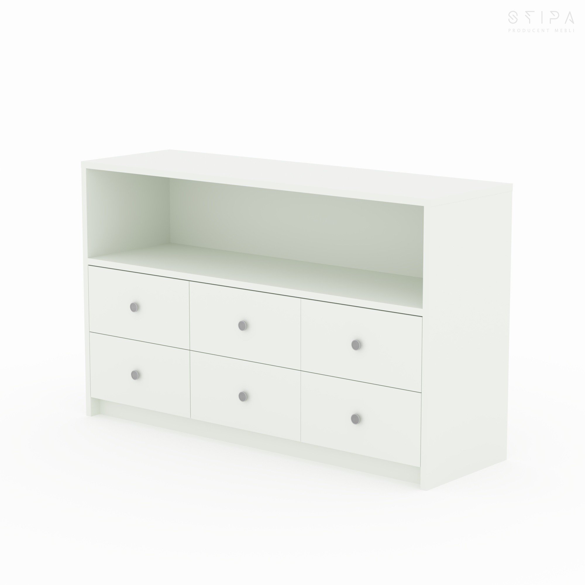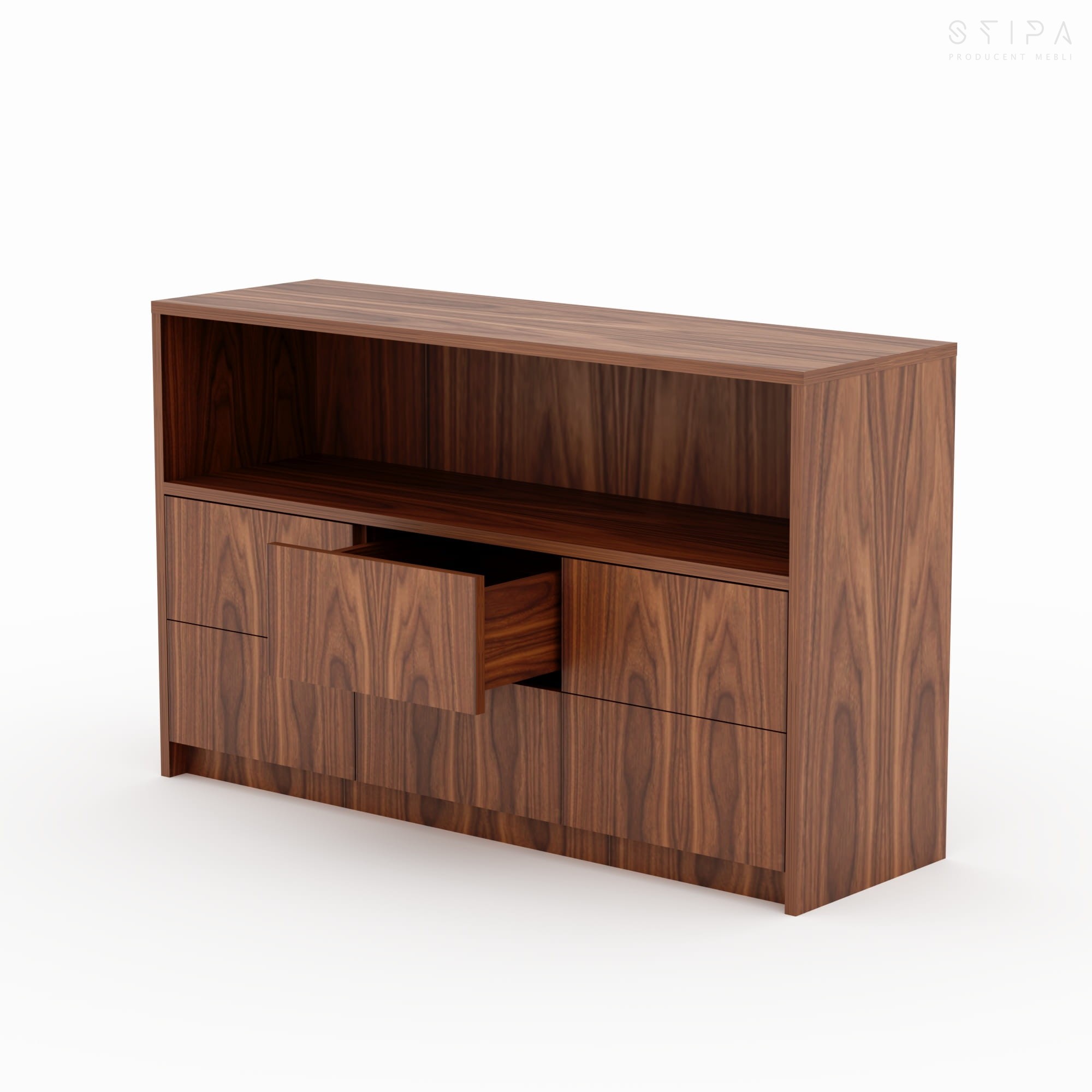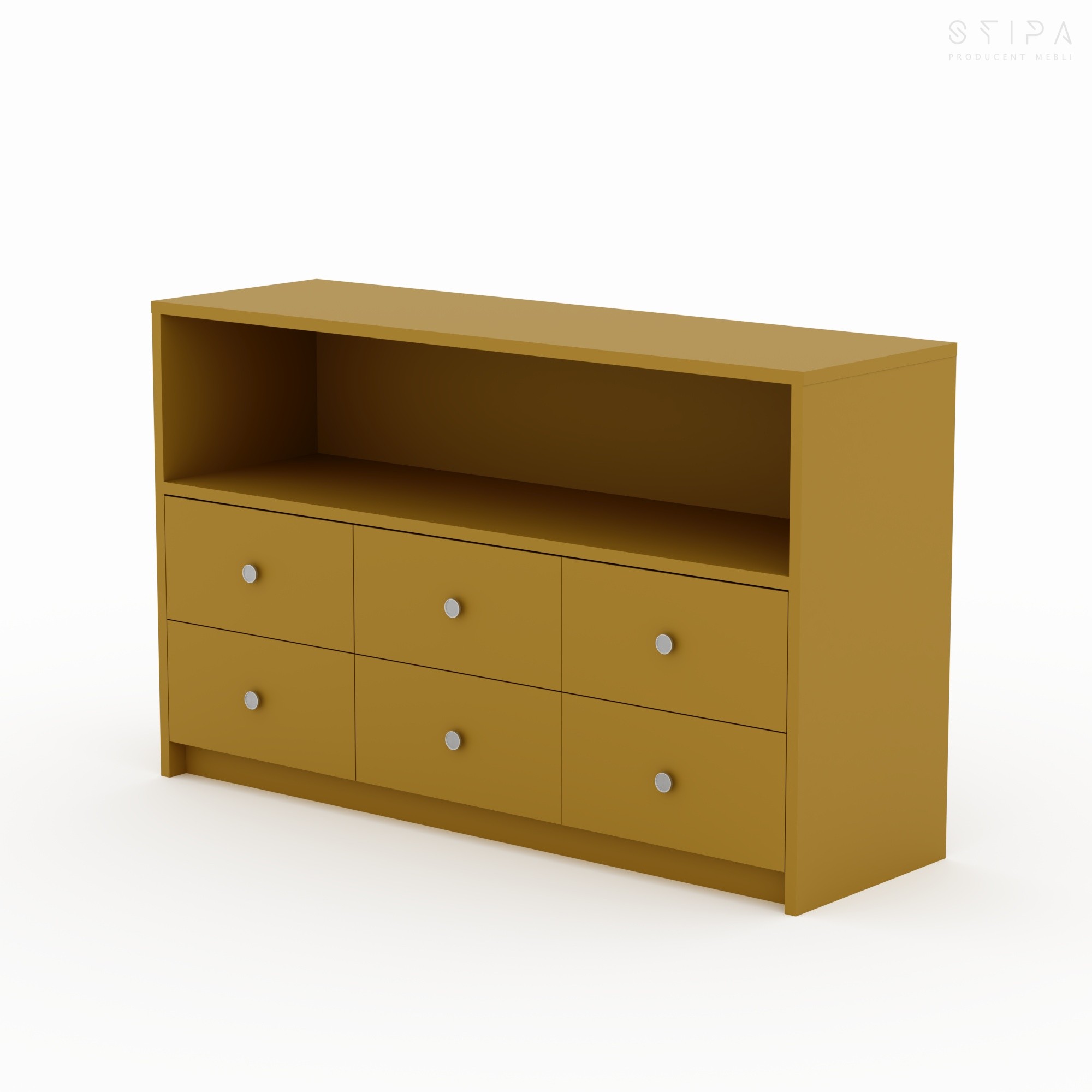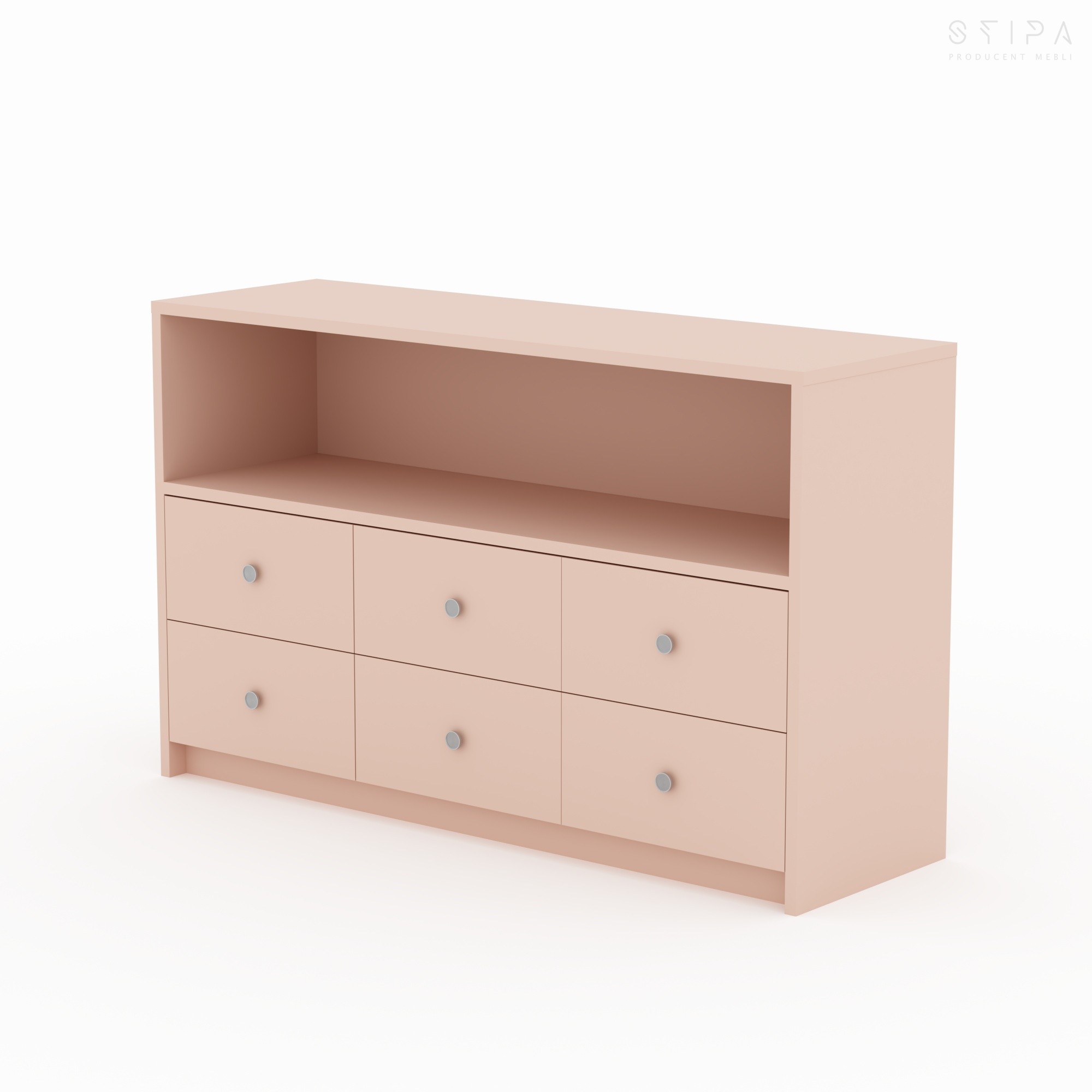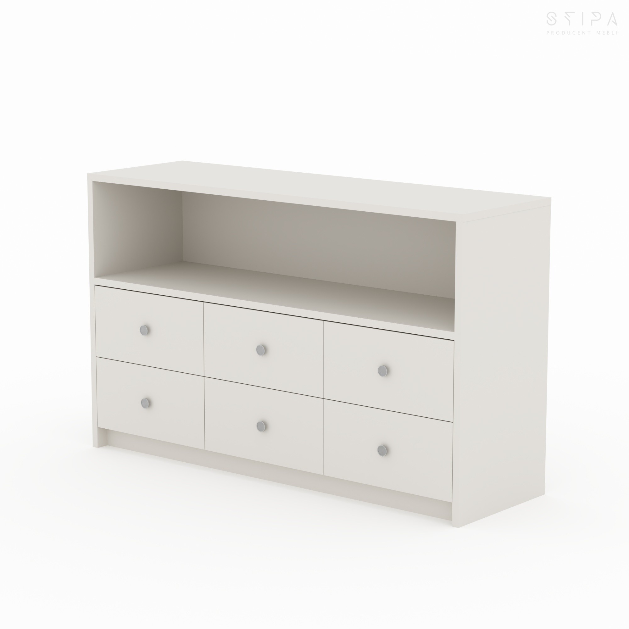 The advantage of the HEATHER model is its unique open-shelf compartment, which is perfect for storing your favorite books, decorations, or electronics essential in your living area. Six spacious drawers provide discreet storage space, helping you maintain perfect order at home.