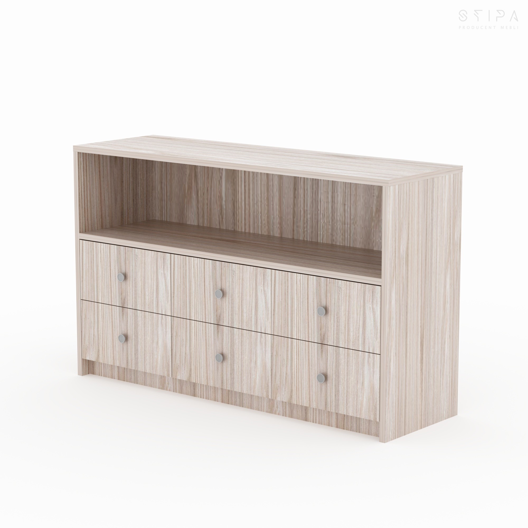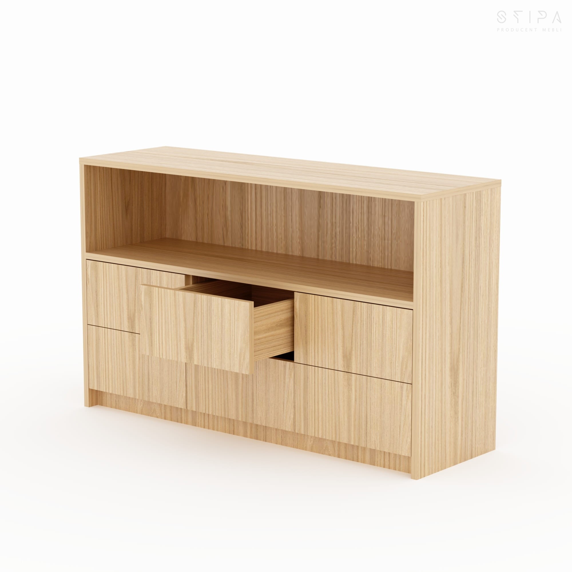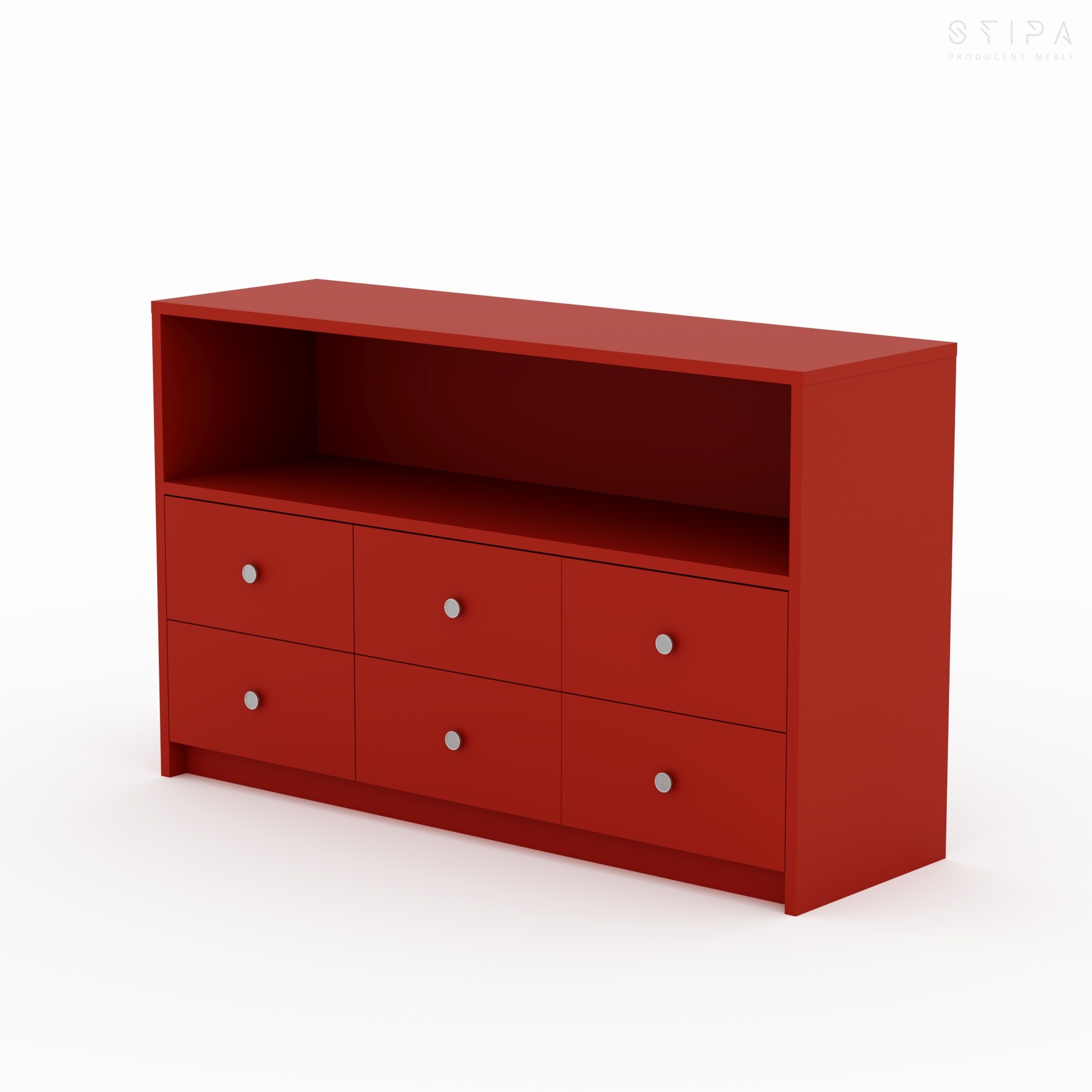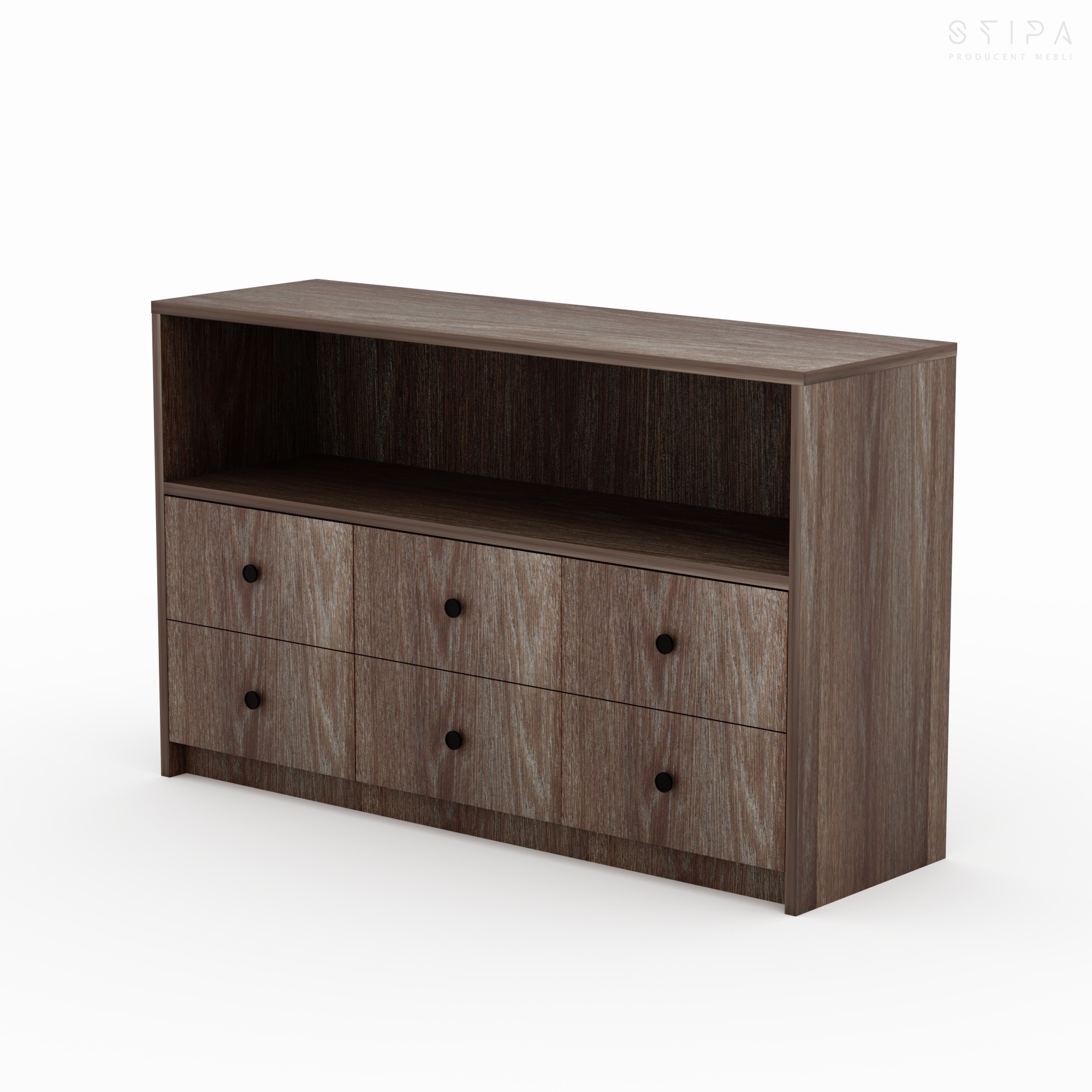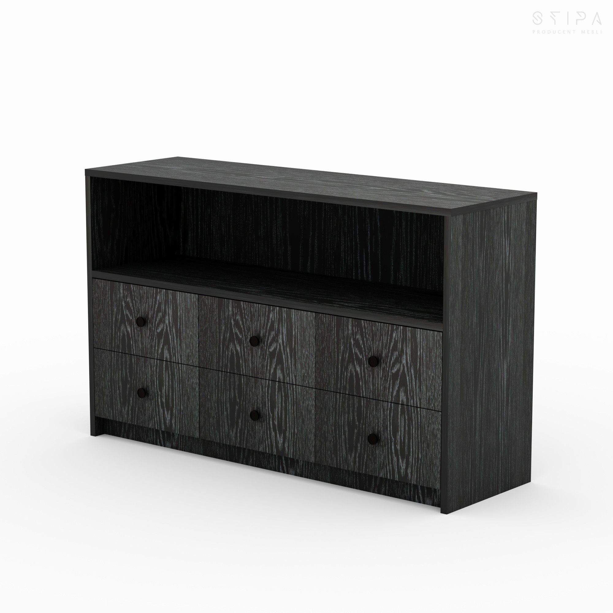 The advantage of the HEATHER model is its unique open-shelf compartment, which is perfect for storing your favorite books, decorations, or electronics essential in your living area. Six spacious drawers provide discreet storage space, helping you maintain perfect order at home.