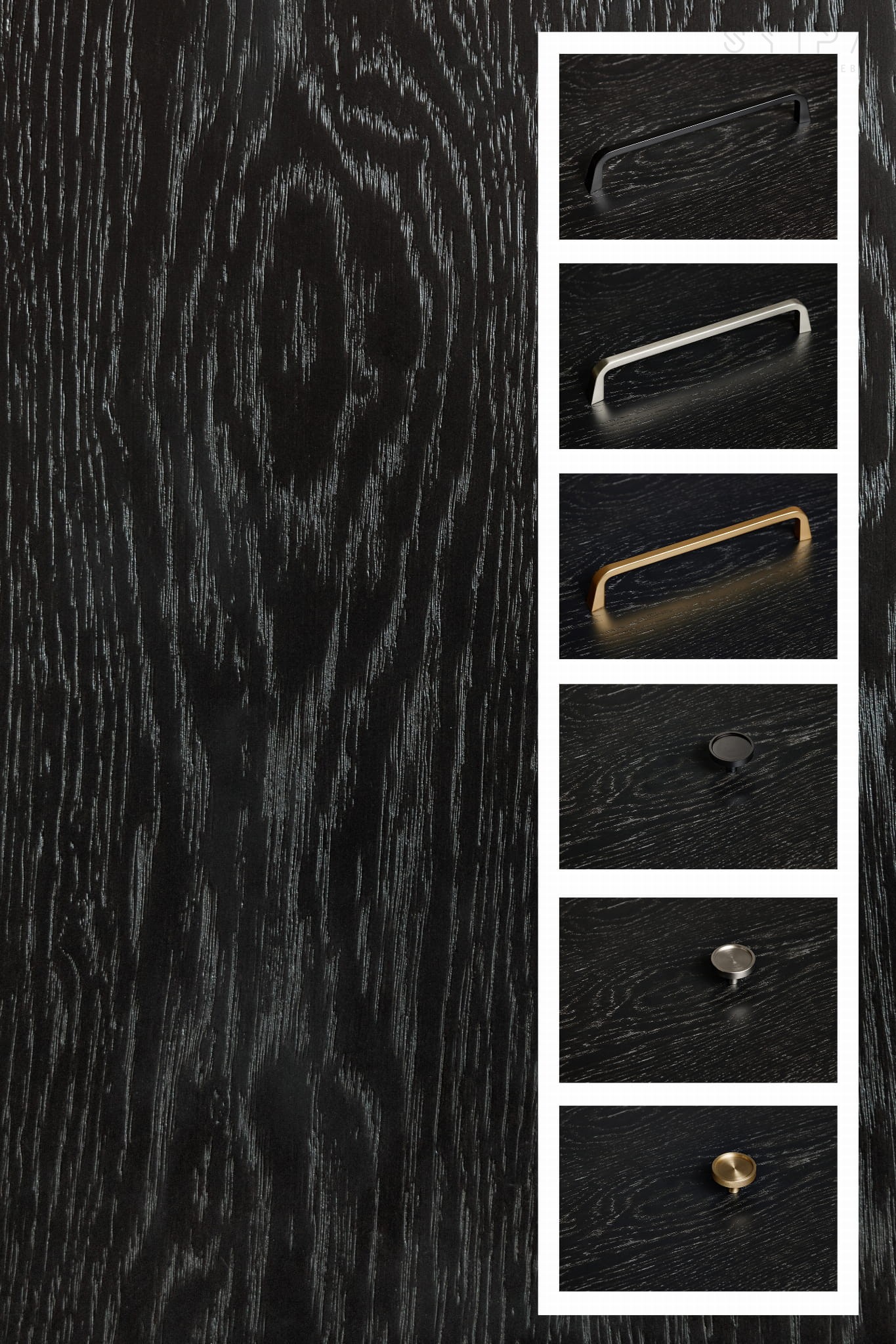 - Body: natural oak veneer, stained in teak, graphite, black, or ash grey
