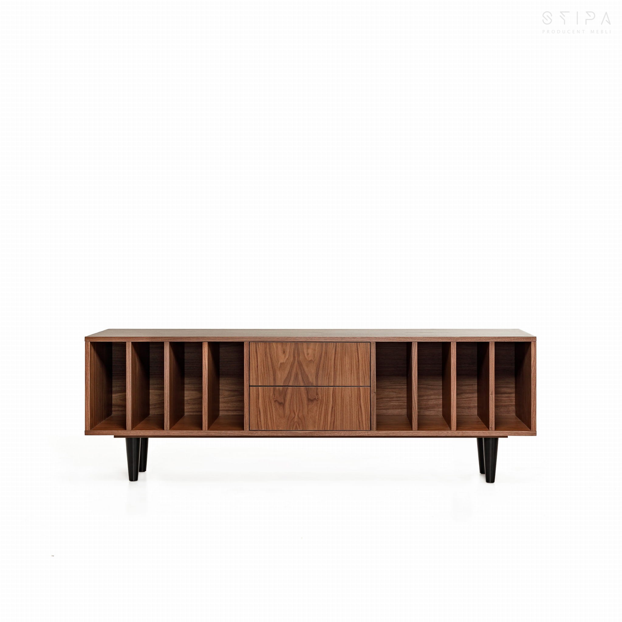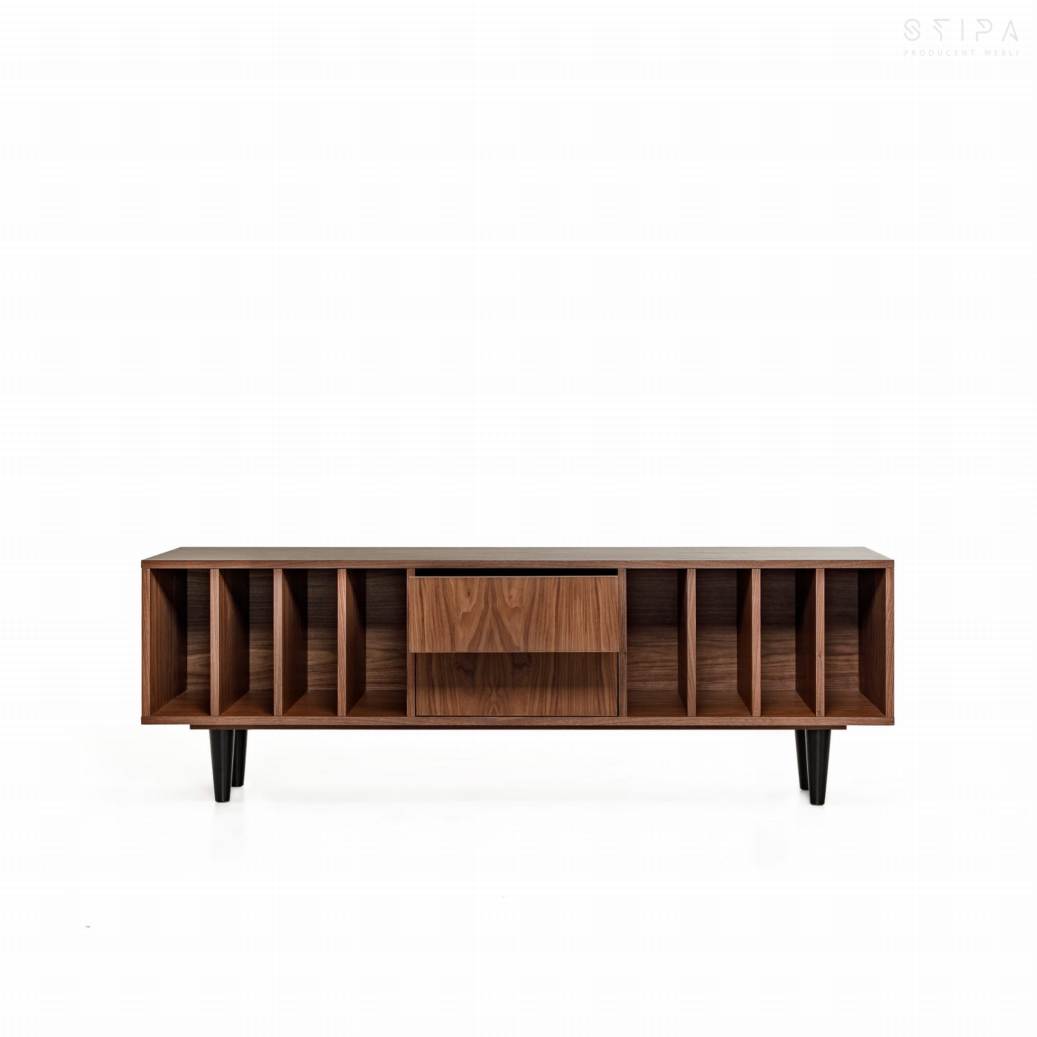 Are you looking for the ideal cabinet to store your favorite vinyl records? Polish furniture manufacturer STIPA has the perfect solution for you - the NOLANA cabinet. It's a functional and stylish piece of furniture that fits perfectly into Scandinavian, loft, industrial, and minimalist interiors. In American walnut veneer, this cabinet is perfect for your living room, office, study, or bedroom. Let us present all its advantages!