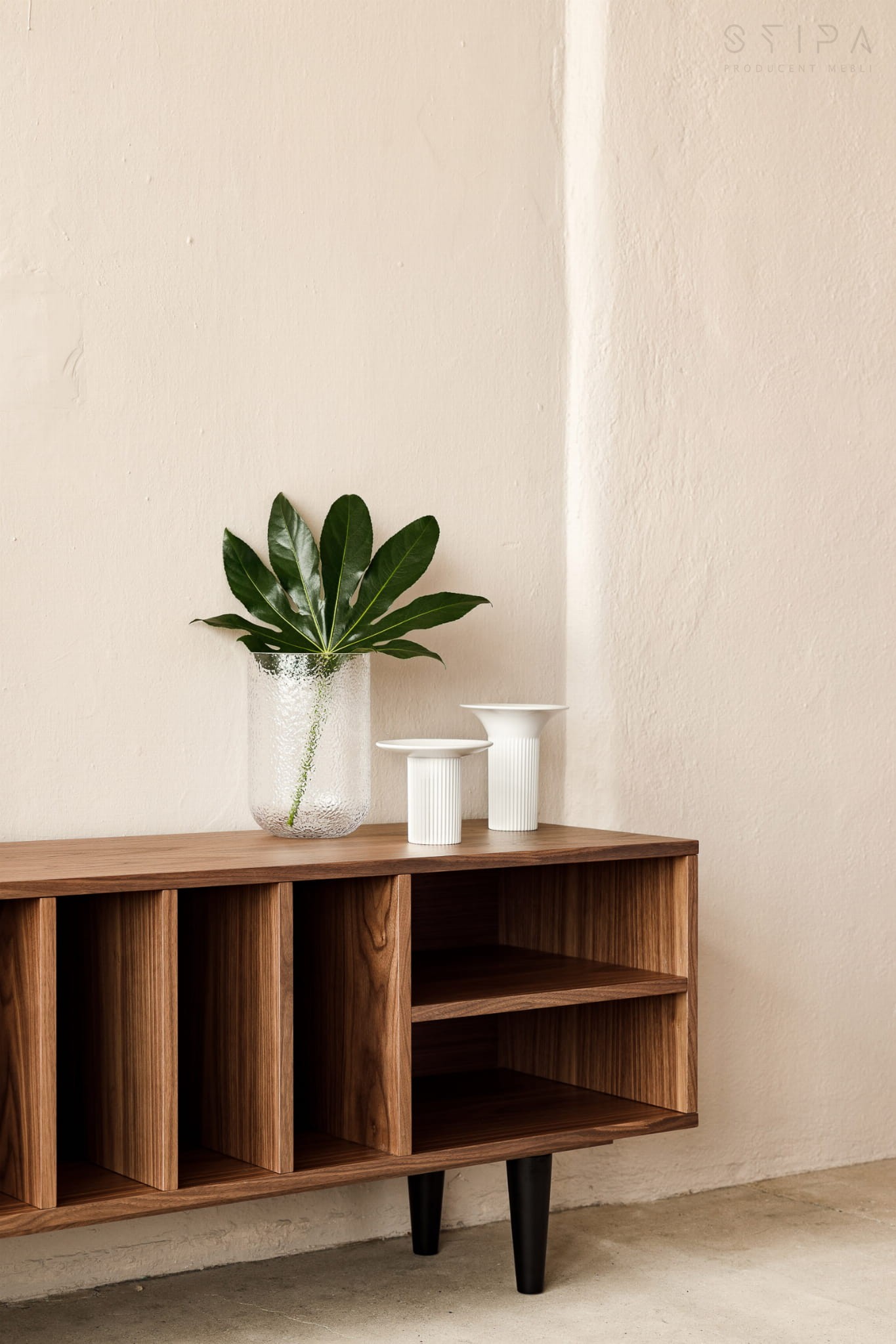 Thanks to three types of legs to choose from, it is possible to adapt it to a given place. They will also allow you to decide whether it should stand directly on the floor or leave free space underneath. The "SILENE" vinyl chest of drawers will perfectly fit into any room where it will be placed. It will also give them a tasteful and classic style. In the living room, bedroom or special room for listening to music, it will be a valuable addition to the environment thanks to the wood from which it was made. In turn, the veneer will ensure solidity and durability for a longer time. Its dark, deep color will certainly harmonize well with other elements of the room and emphasize or accentuate its character.