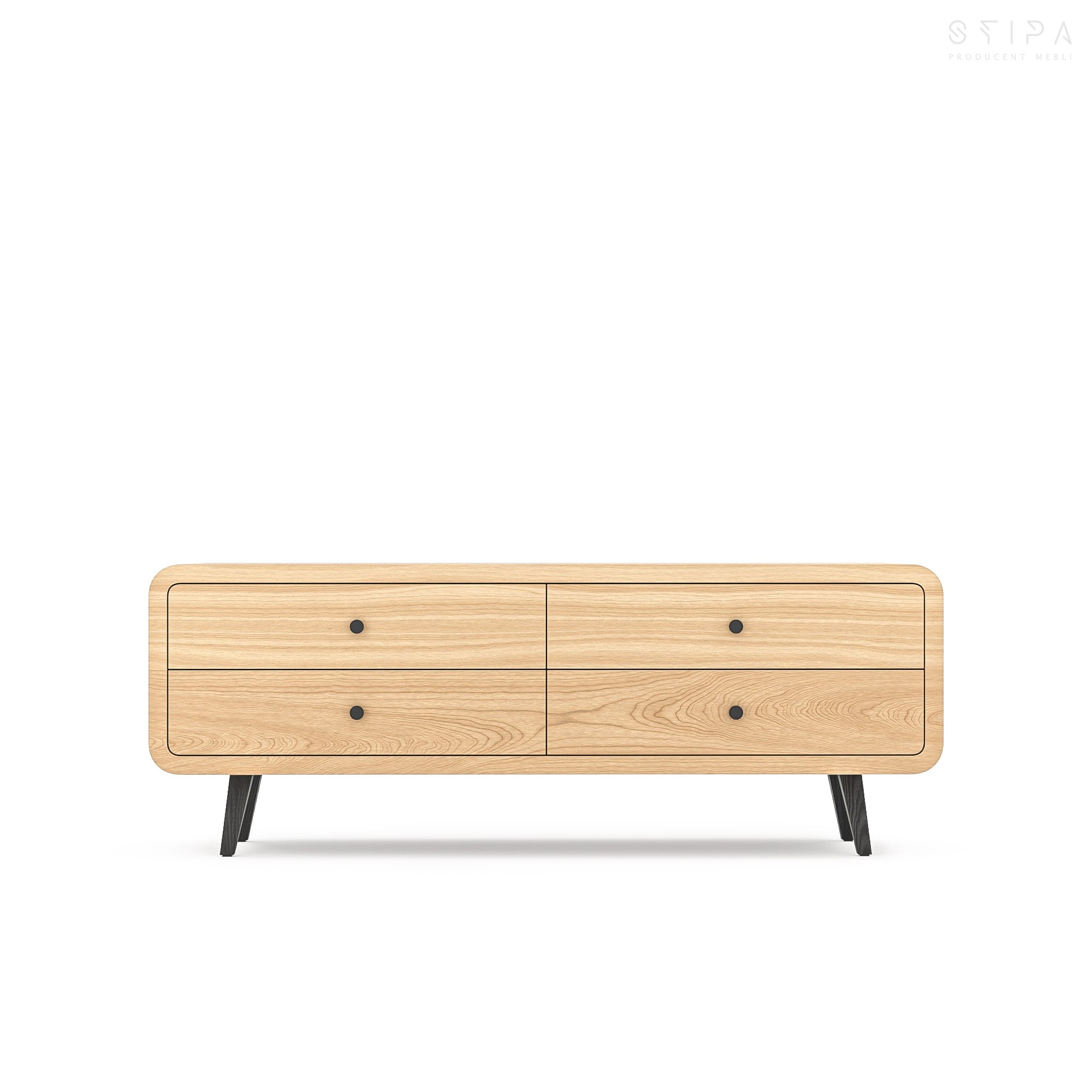 Elegancka i funkcjonalna komoda z 4 pojemnymi szufladami, idealna do salonu, sypialni lub przedpokoju. Wykonana z wysokiej jakości forniru drewna dębowego, które zapewnia trwałość i naturalne piękno. Komoda posiada minimalistyczny design z zaokrąglonymi krawędziami, które nadają jej nowoczesnego charakteru. Solidna konstrukcja gwarantuje długie użytkowanie. Idealna do przechowywania ubrań, książek, dokumentów oraz innych przedmiotów.