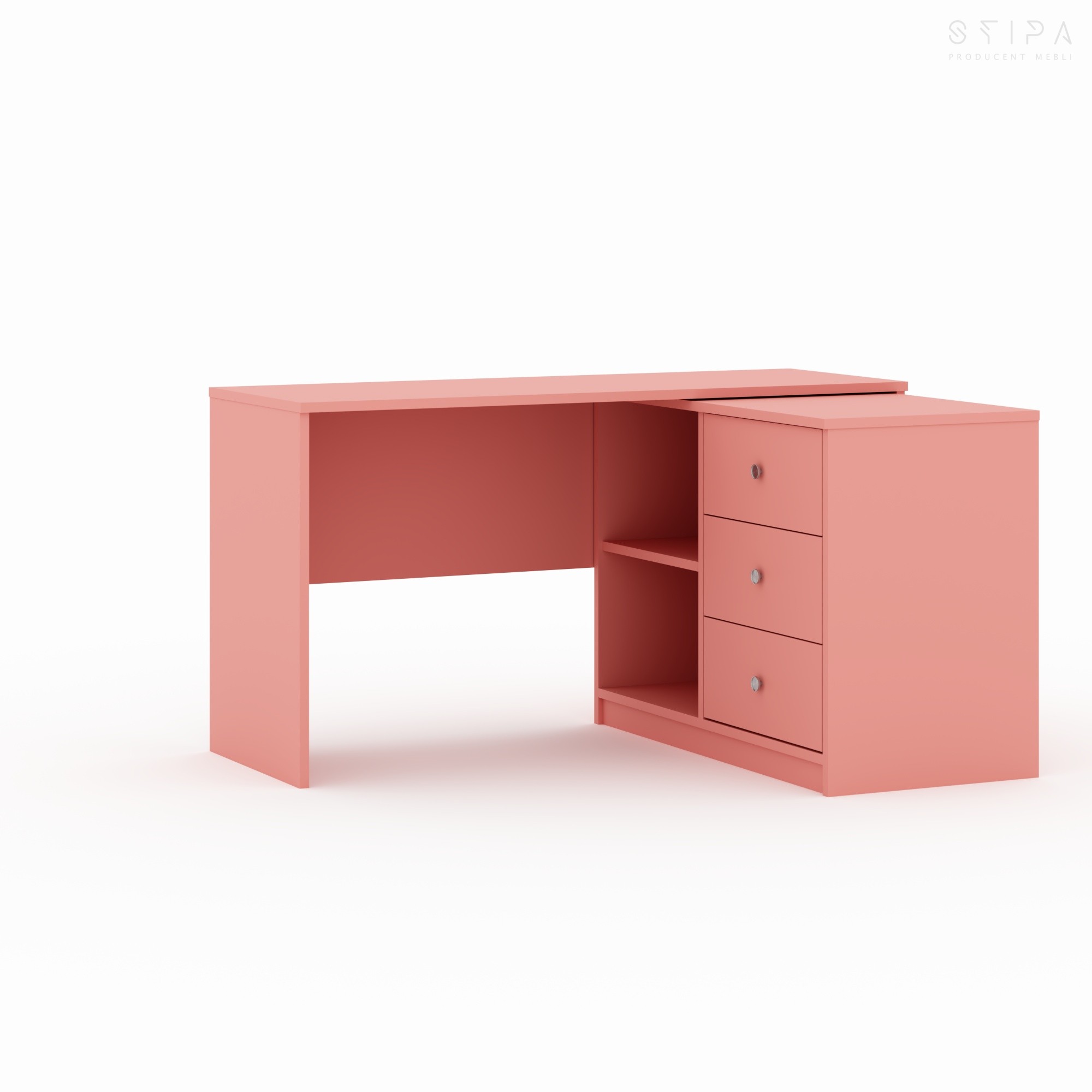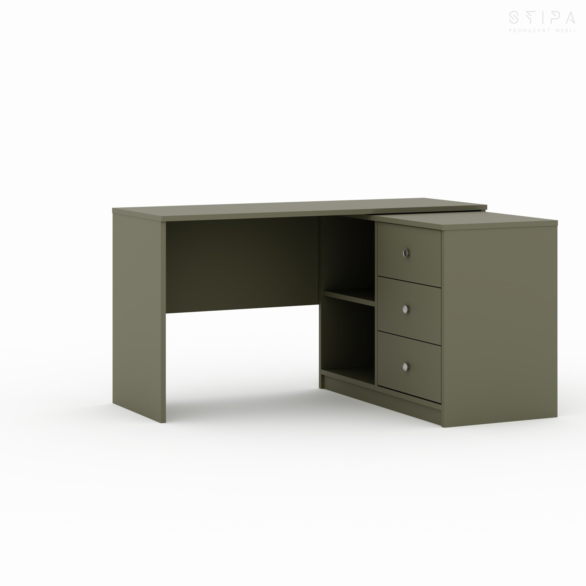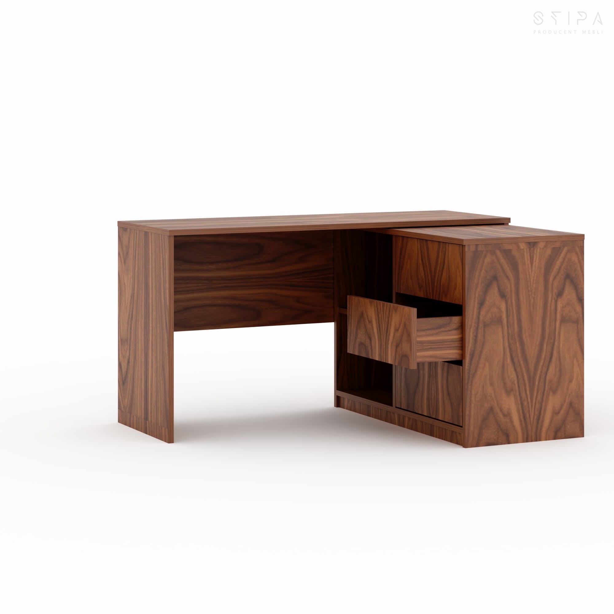 - Strefa przechowywania - szuflady + otwarta wnęka (idealna na segregatory i akcesoria).