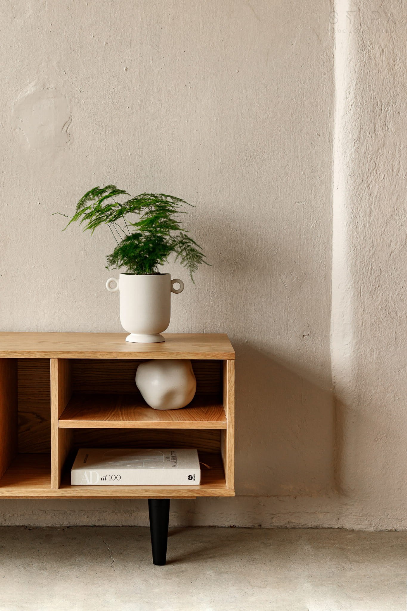 Szafka dębowa na płyty winylowe do pomieszczeń w stylu skandynawskim, loftowym lub industrialnym