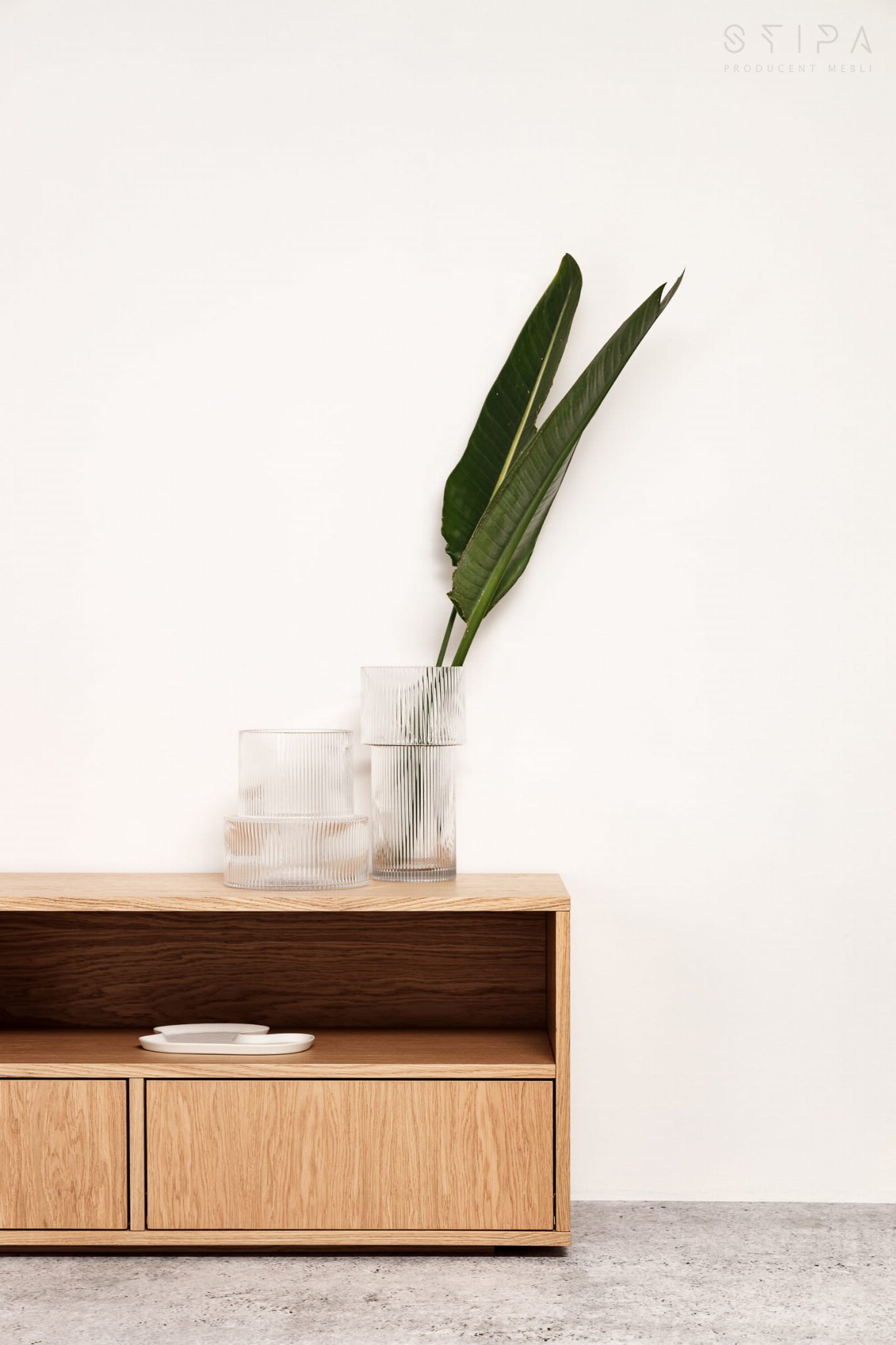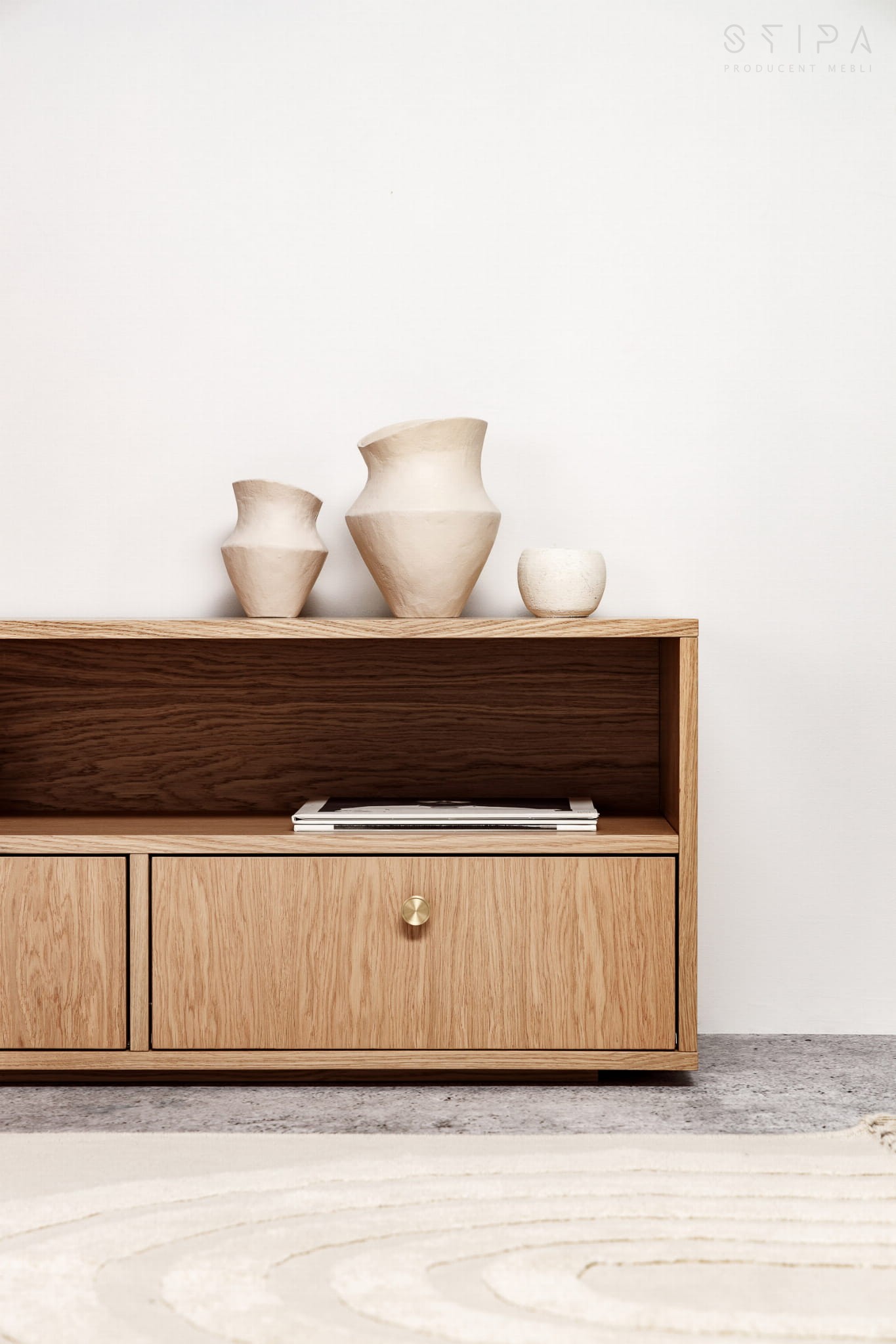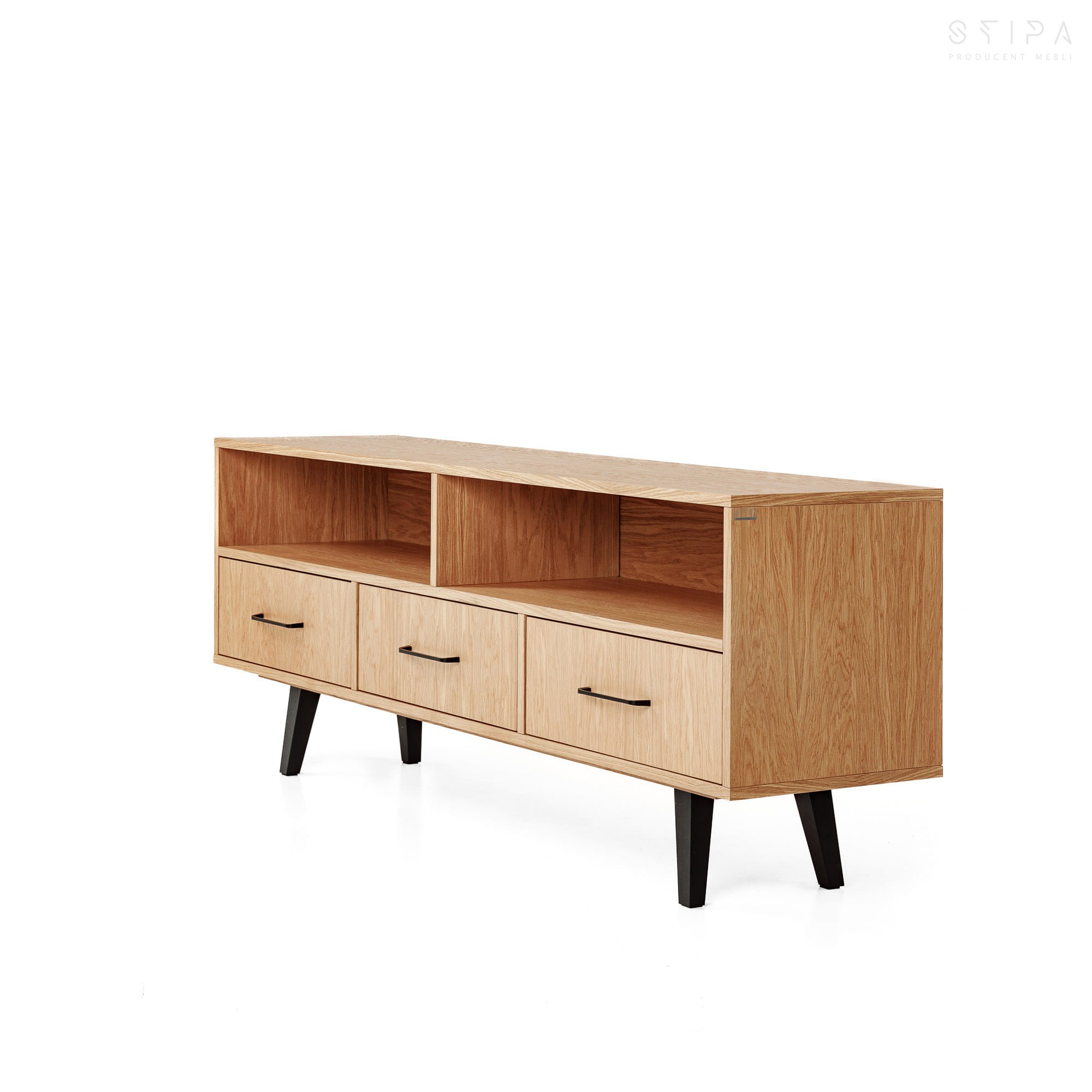 Komoda pod tv dębowa z 2 półkami i 3 szufladami