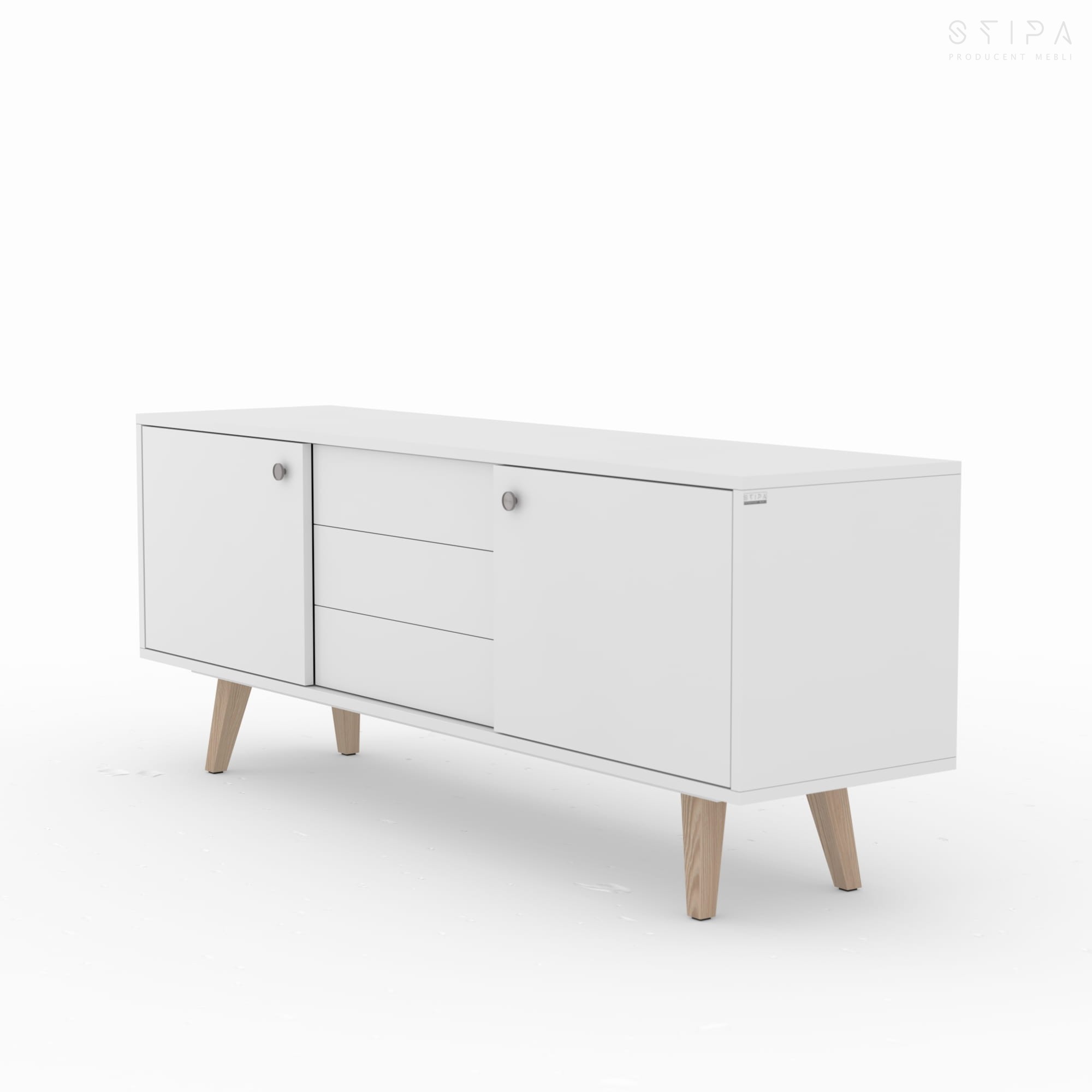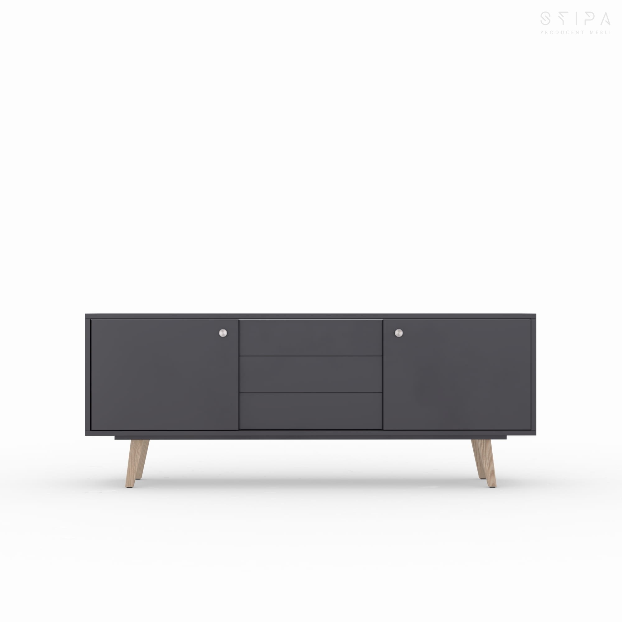 Szafka RTV MINT to doskonałe rozwiązanie dla tych, którzy cenią funkcjonalność i nowoczesny design. Wyposażona w drzwi przesuwne po obu stronach mebla, zapewnia łatwy dostęp do wnętrza, jednocześnie oszczędzając cenną przestrzeń. W centralnej części mebla znajdują się trzy wygodne szuflady, idealne do przechowywania różnorodnych akcesoriów.