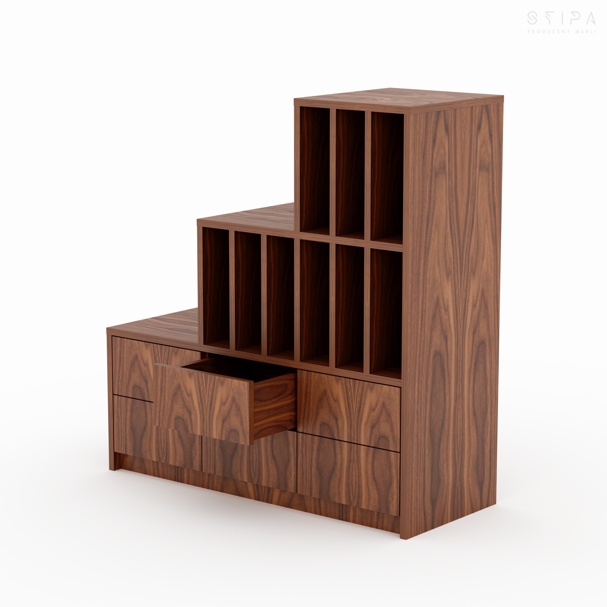 VIOLA – regał schodkowy na płyty winylowe (LP) z szufladami