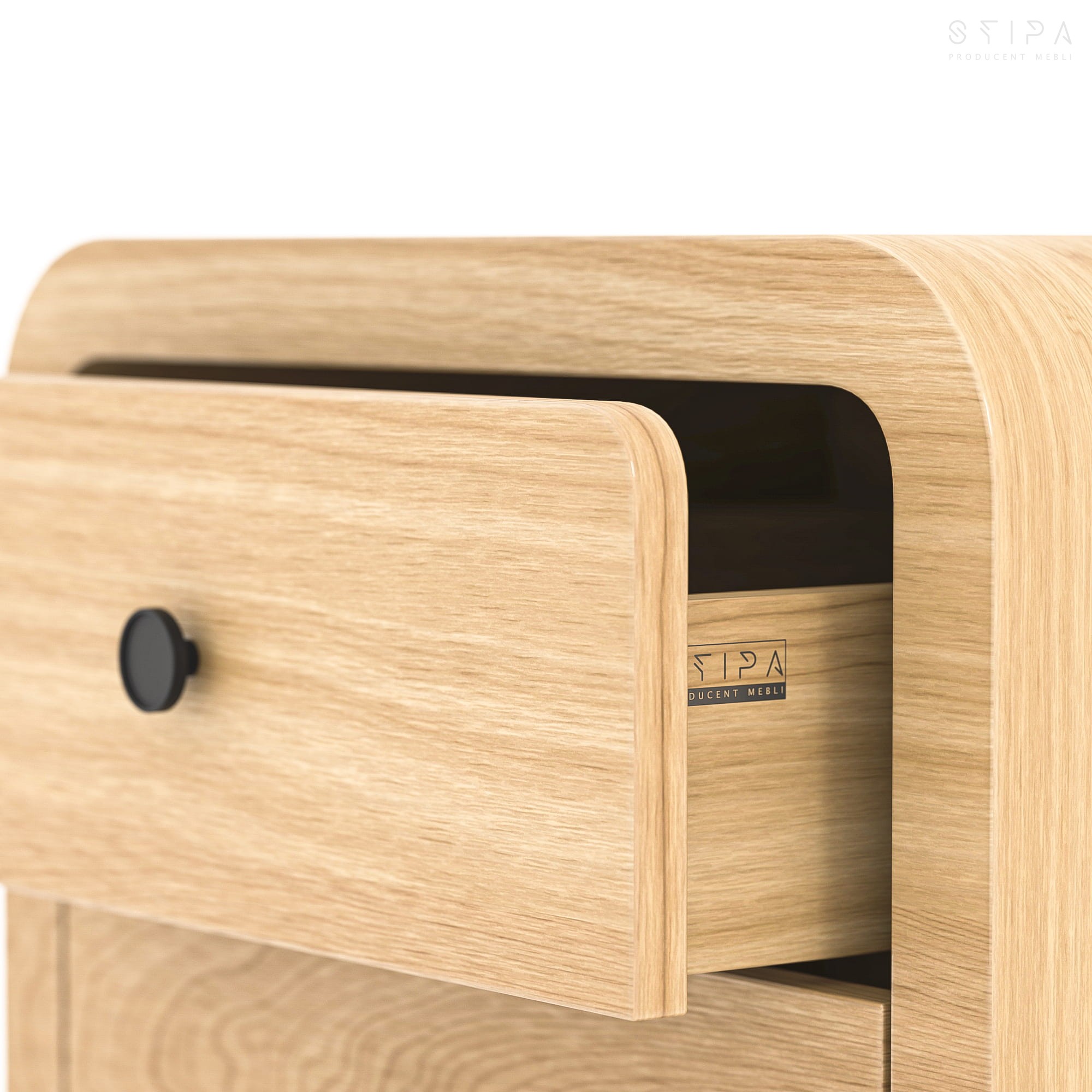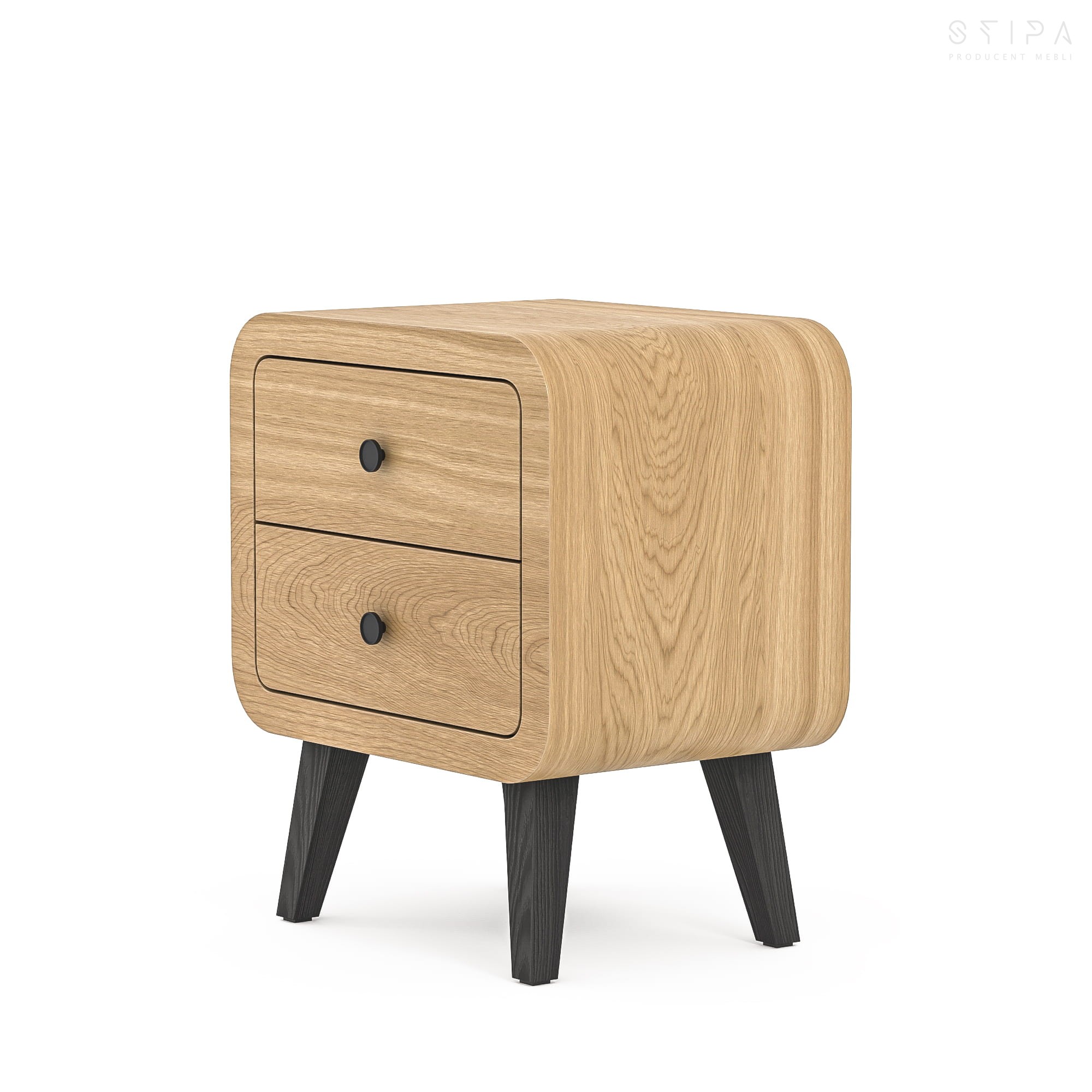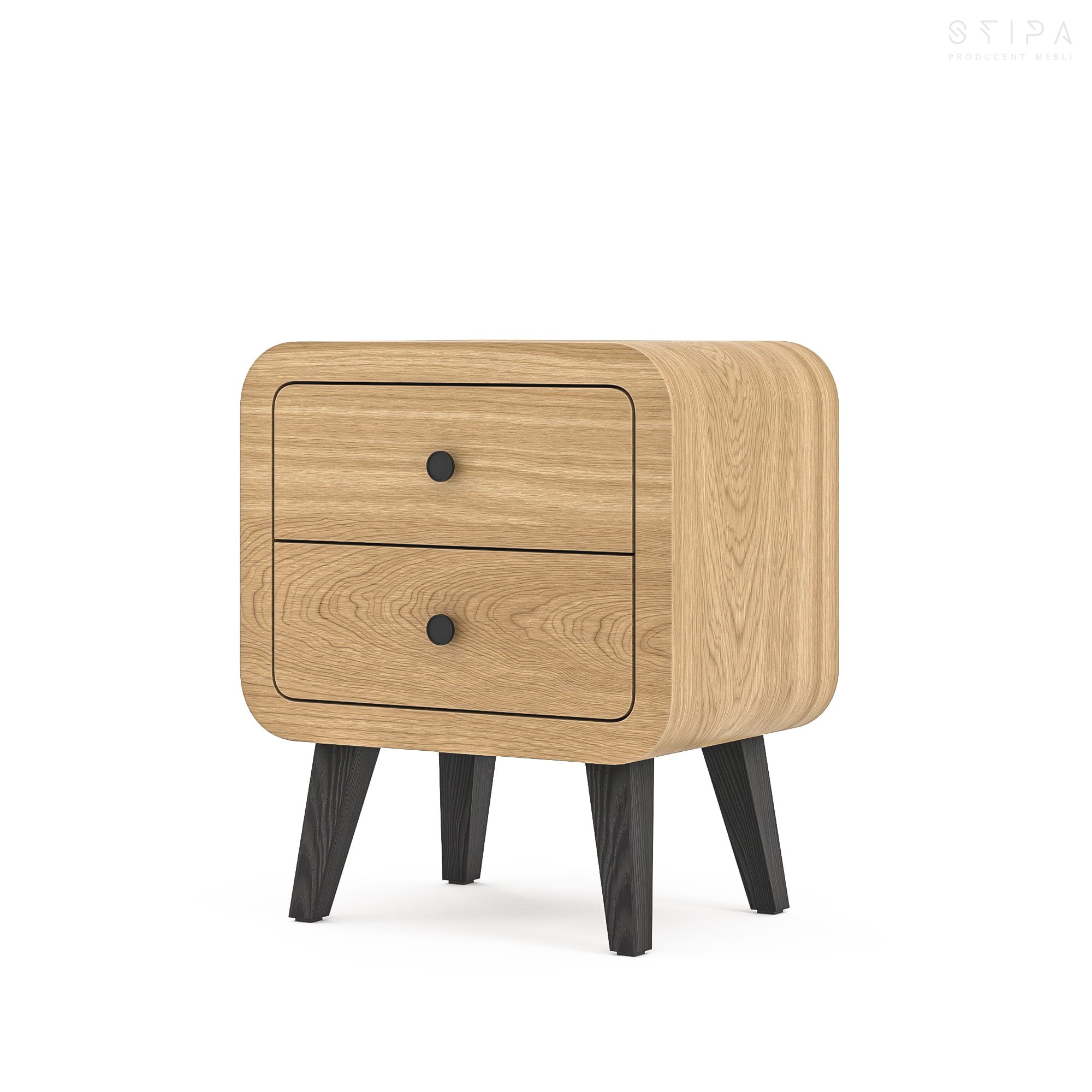 Zaokrąglone krawędzie szafki i subtelne linie konstrukcji podkreślają jej elegancki design. Wyposażona w dwie pojemne szuflady, DAISY zapewnia wygodne miejsce na przechowywanie codziennych drobiazgów, pomagając utrzymać porządek w sypialni. Możliwość personalizacji uchwytów i nóg dodatkowo pozwala dostosować szafkę do indywidualnych potrzeb, tworząc harmonijny i funkcjonalny element wystroju.
