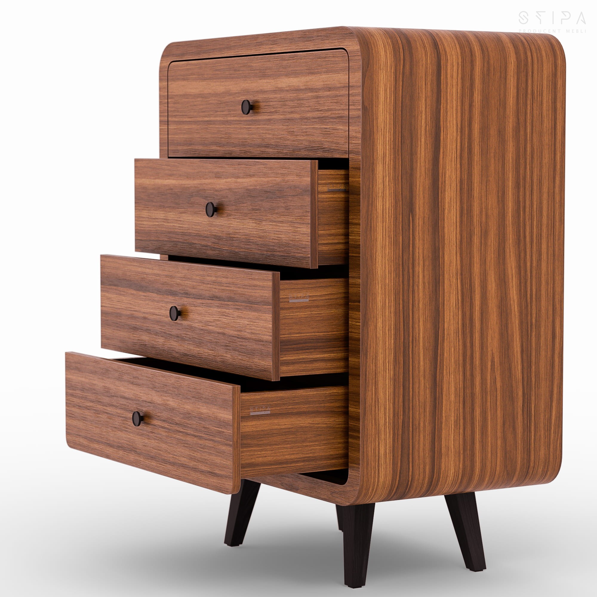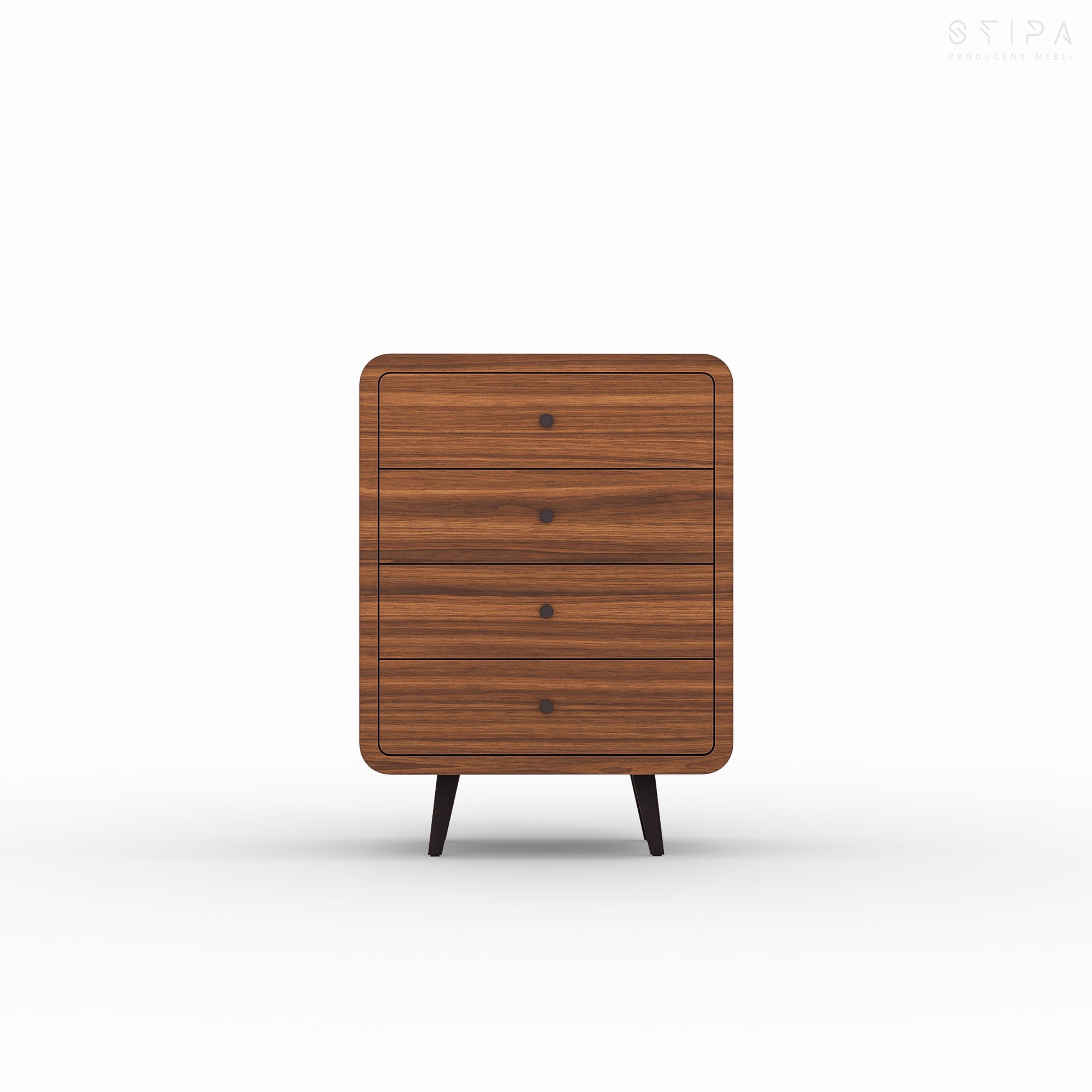 Komoda wysoka Mid-Century Modern z 4 szufladami | Komoda fornirowana orzech amerykański | Stylowe przechowywanie w sypialni